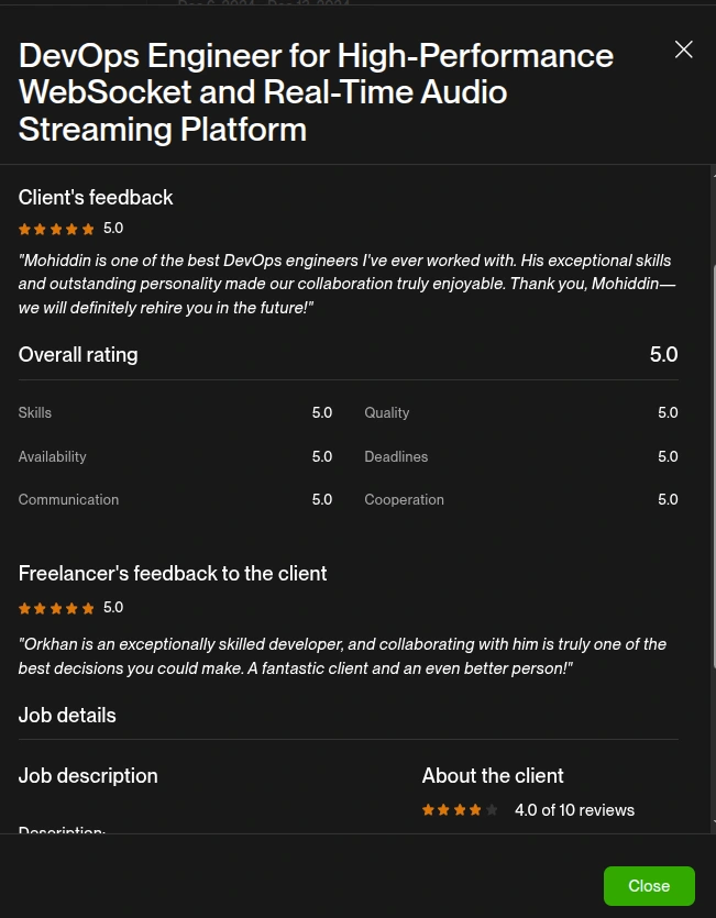 ⭐ “One of the best DevOps engineers I’ve ever worked with. Exceptional skills and personality.”
