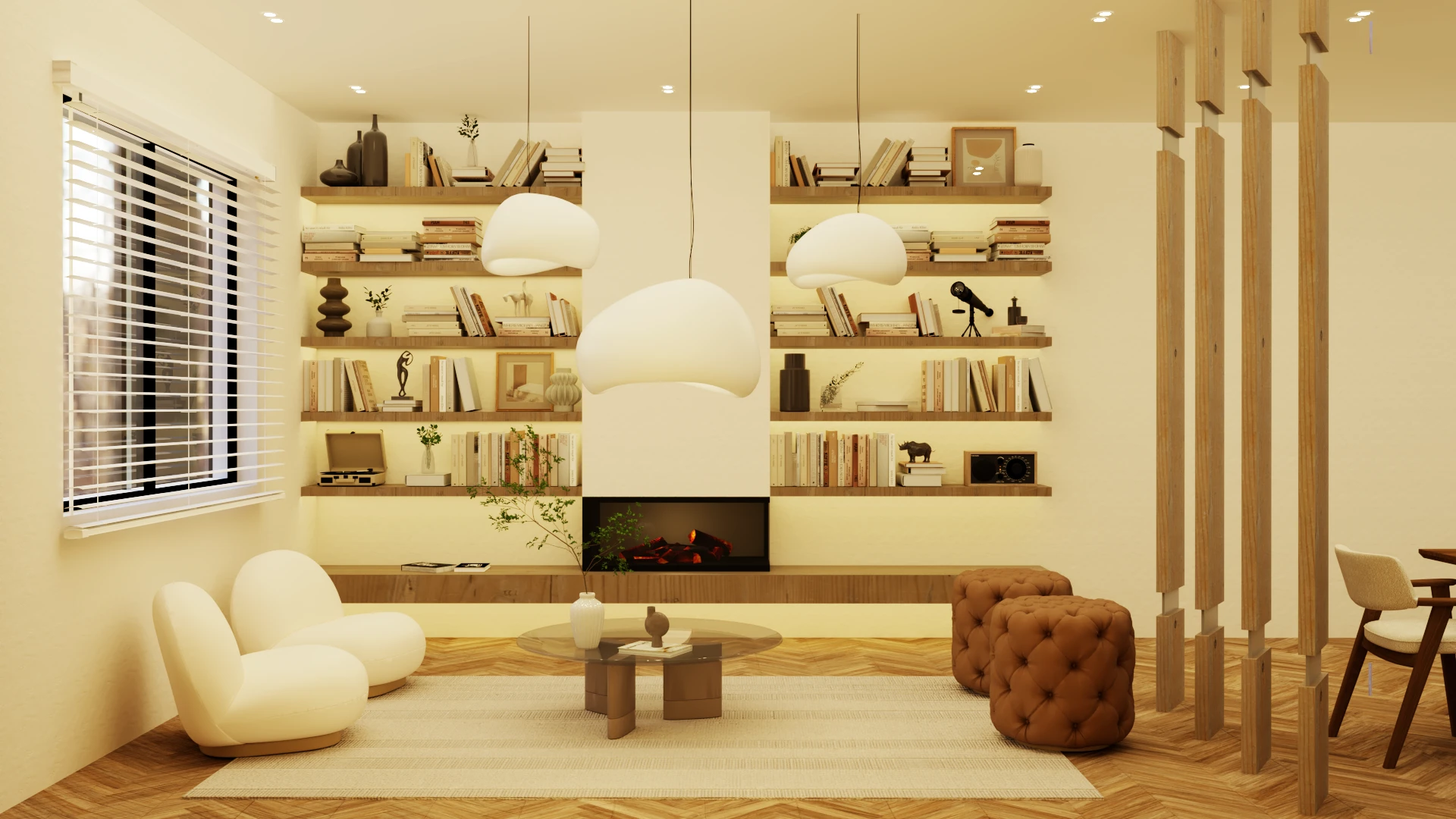 My first experiment with V-Ray, focused on exploring light, texture, and cozy modern layouts.