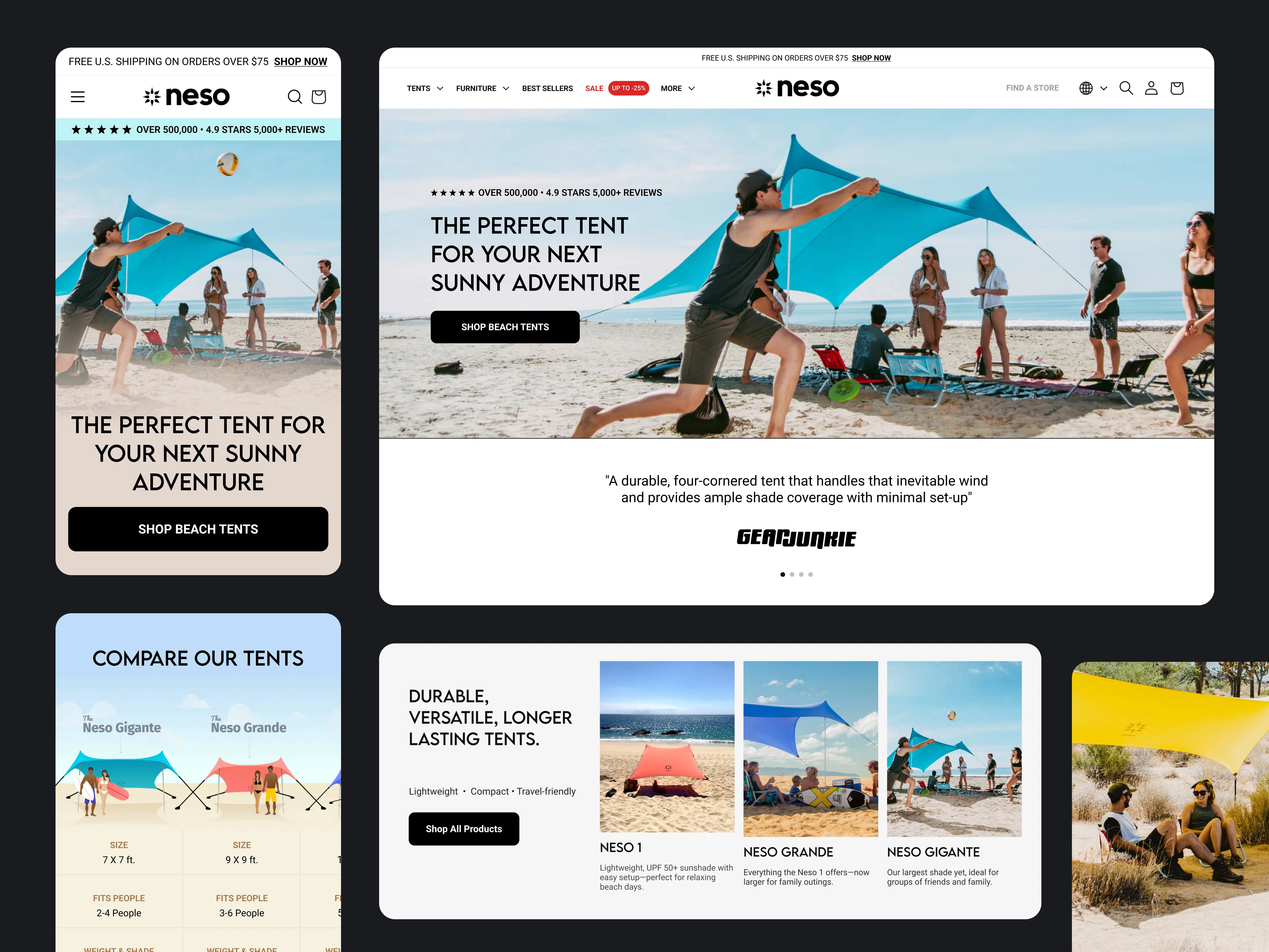 neso.com is an e-commerce website specializing in lightweight, portable beach tents, sunshades, and outdoor accessories designed for beach days and outdoor adventures.