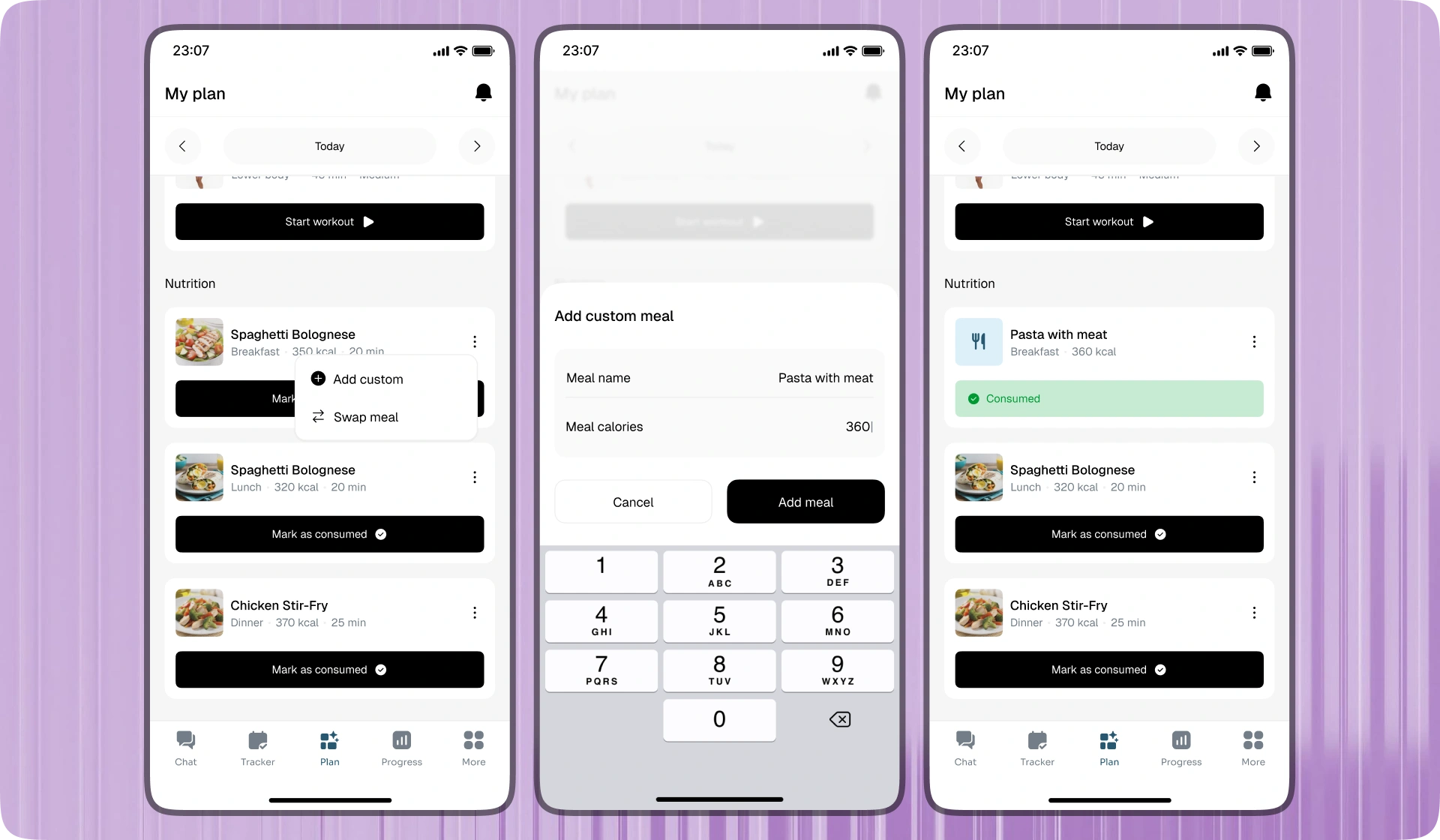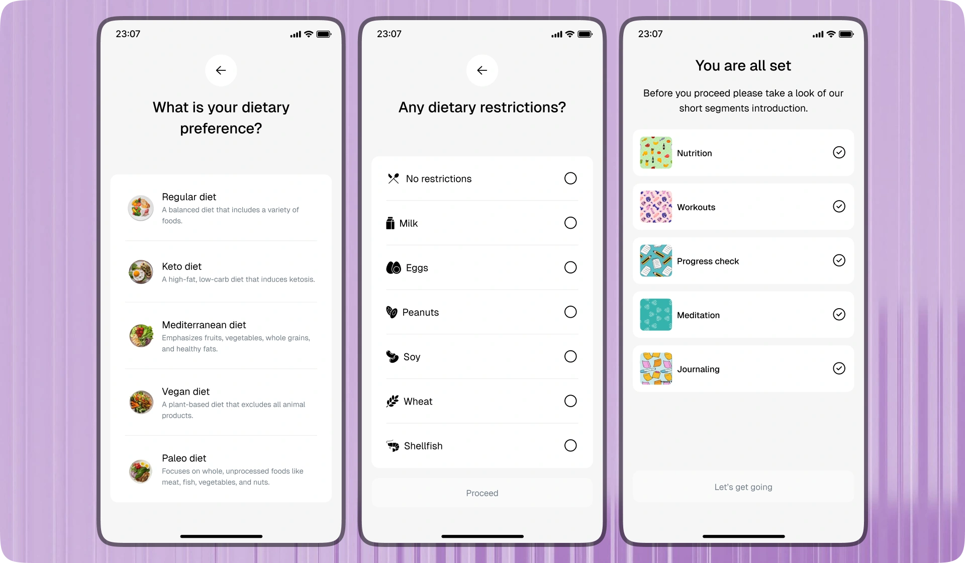 I designed the navigation from the ground up, solving the biggest pain point. I restructured nutrition and workout sections for clarity, simplified and automated analytics, improved health tracking integrations, and made the experience engaging and playful. Then I refined onboarding through group testing until it felt effortless.