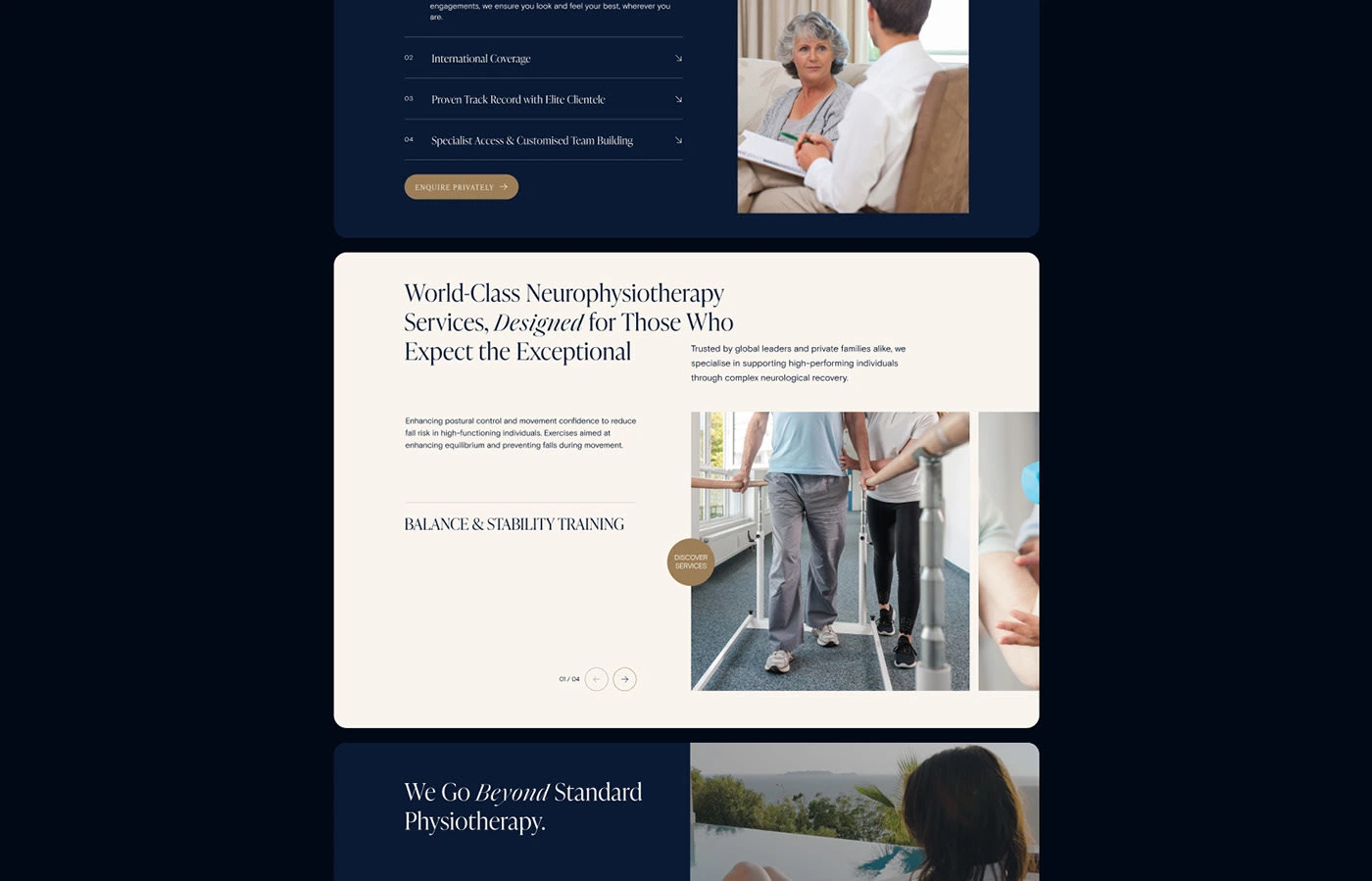 Redesigned Salisbury Physiotherapy Clinic's website to reflect luxury and expertise.