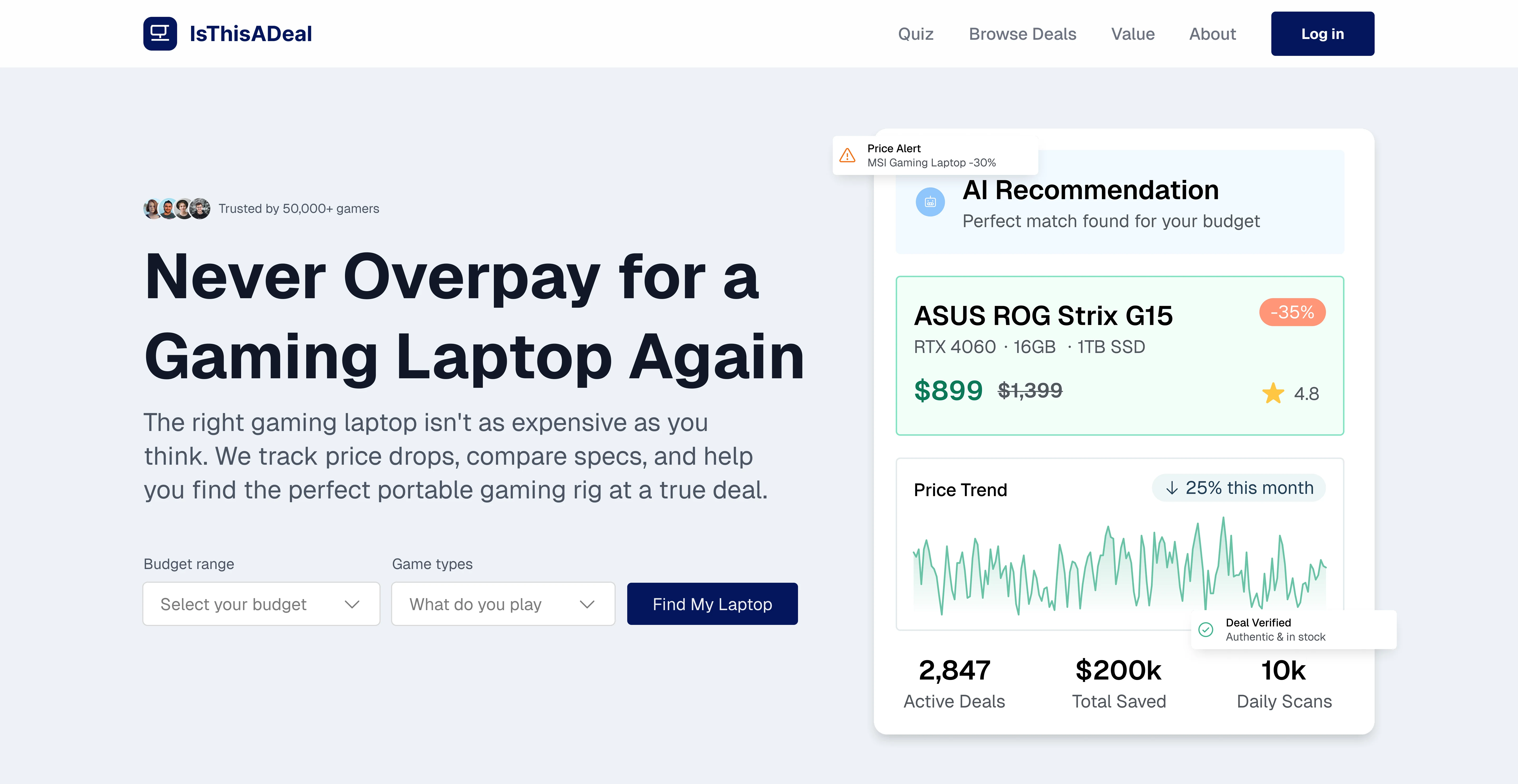 Redesigned IsThisADeal.ai’s homepage to shift from mascot-driven to data-driven, creating a more credible, conversion-focused platform.