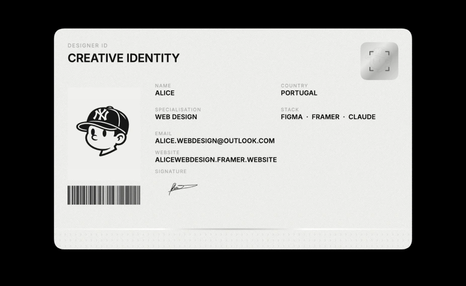 The concept in one sentence: a creative ID card generator for designers that lives on social media, feels personal, and works beautifully on every device.