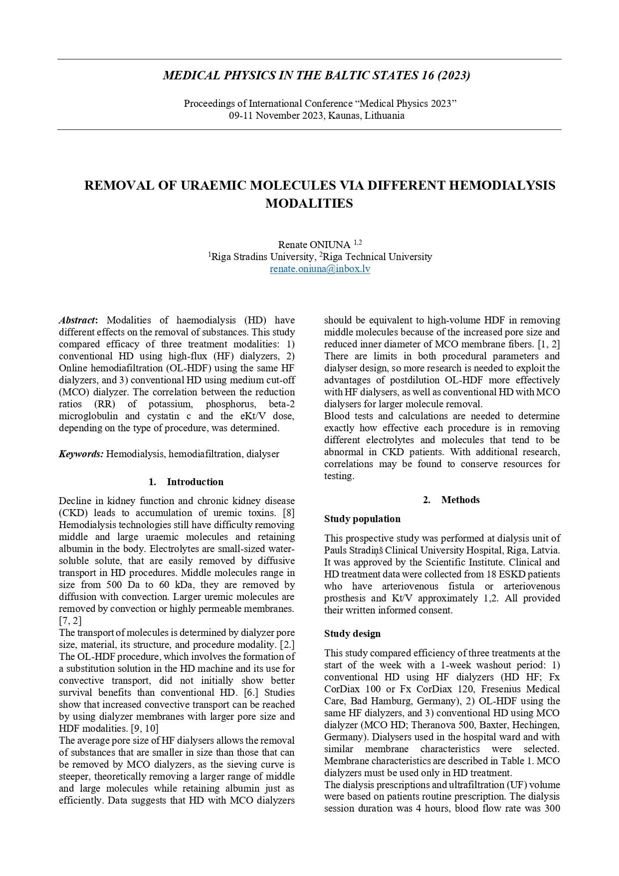 Draft based on bachelor thesis comparing dialyzer efficacy via patient data. Unpublished, shows skills in data analysis & scientific writing.