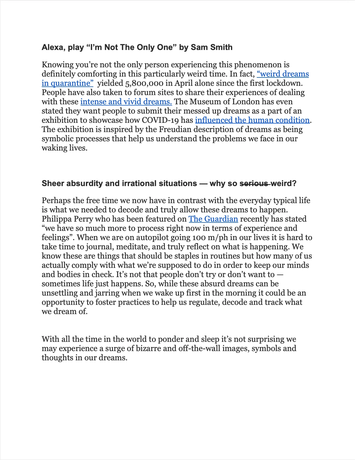 Create a reactive blog post exploring the quarantine phenomenon of weird dreams.