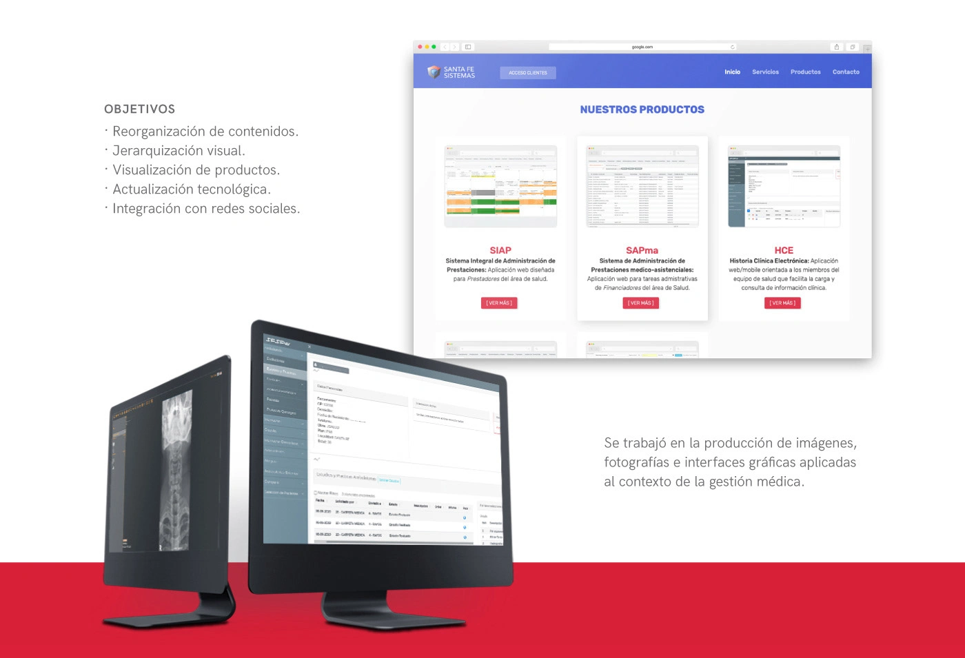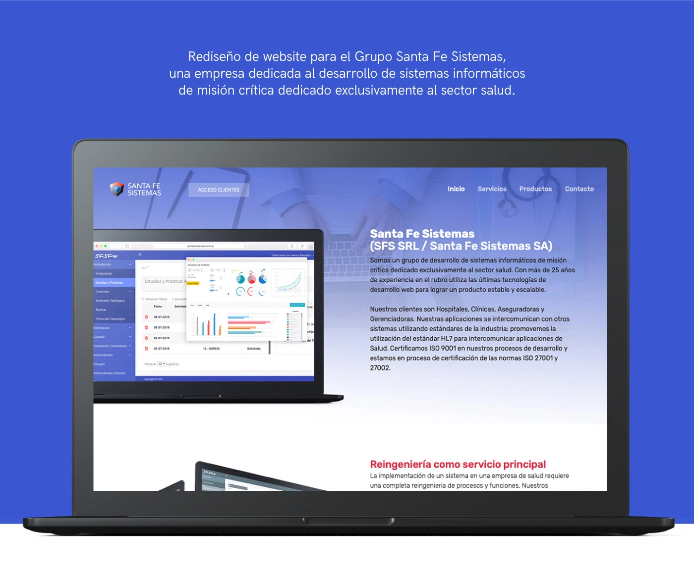 Rediseño de sitio web para empresa de software dedicada al mantenimiento de sistemas de gestión crítica médica.