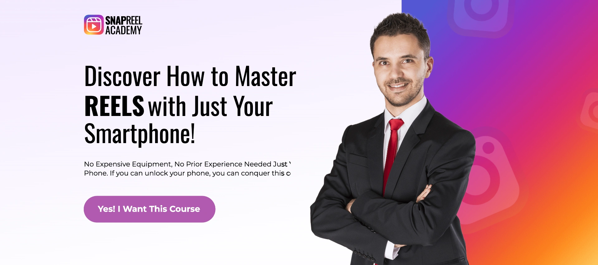 Compelling Value Proposition: The page emphasizes that users can learn professional Reels creation without expensive equipment, making the course approachable and accessible for beginners and seasoned creators alike.
