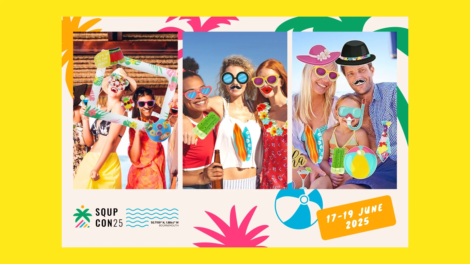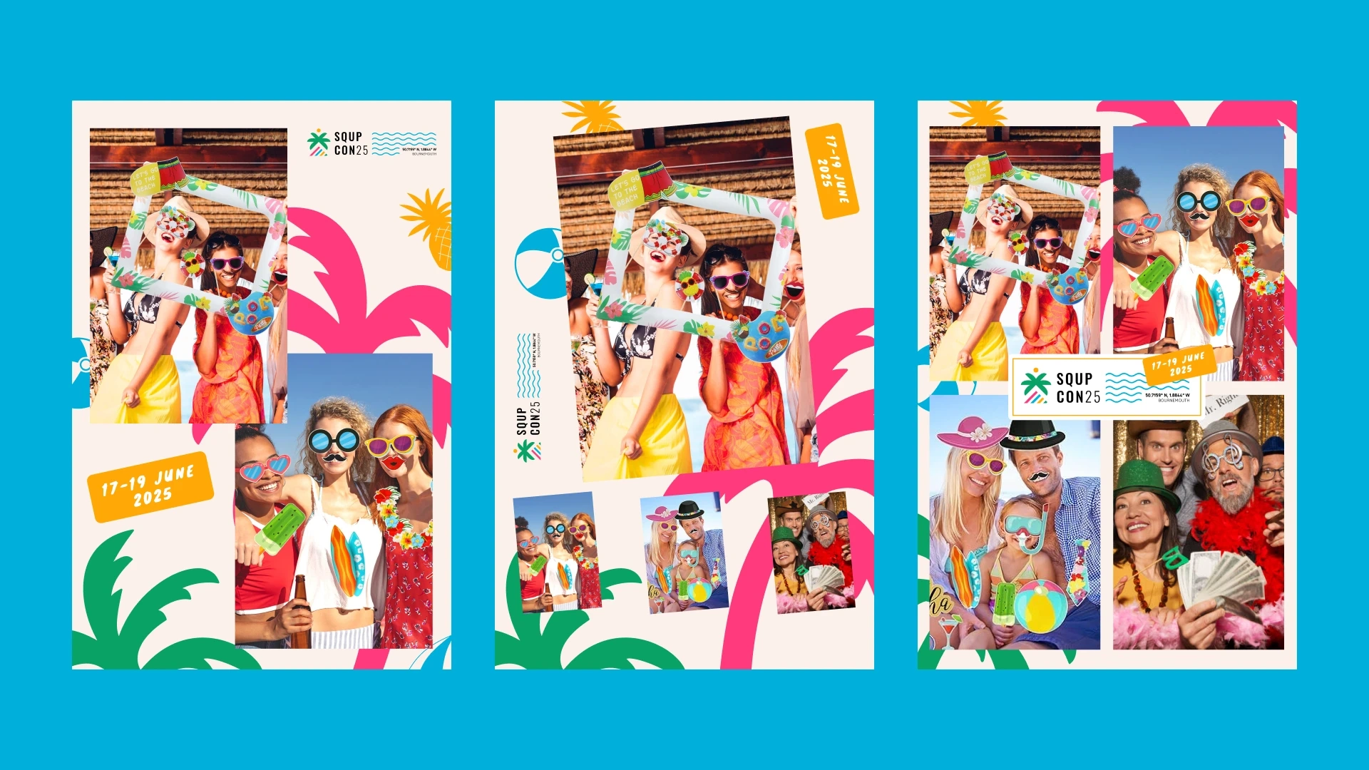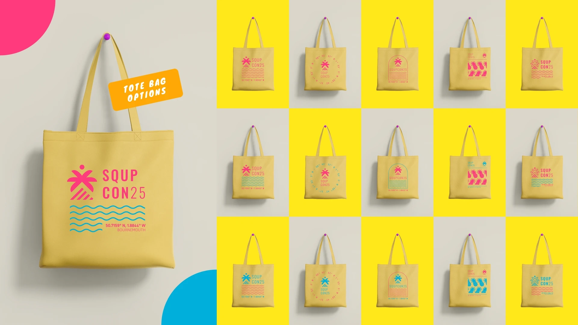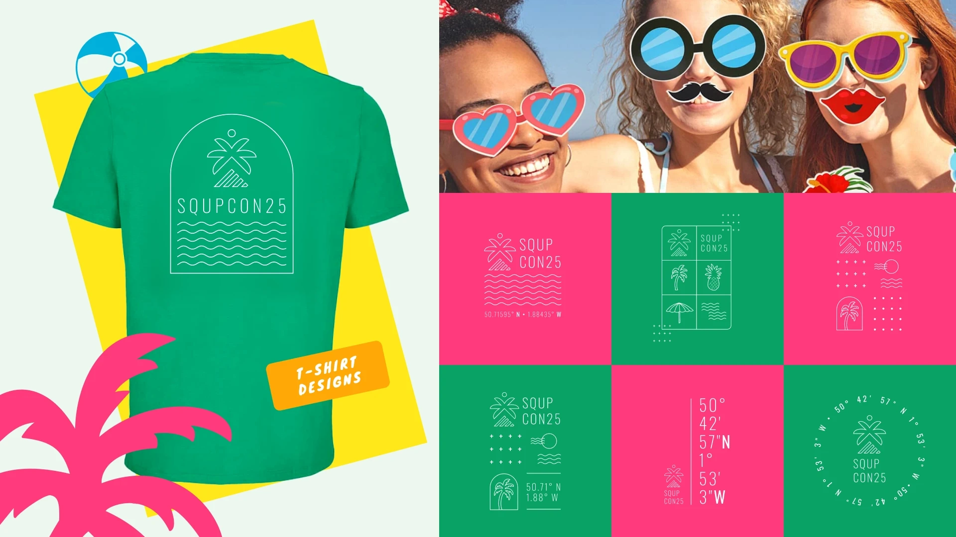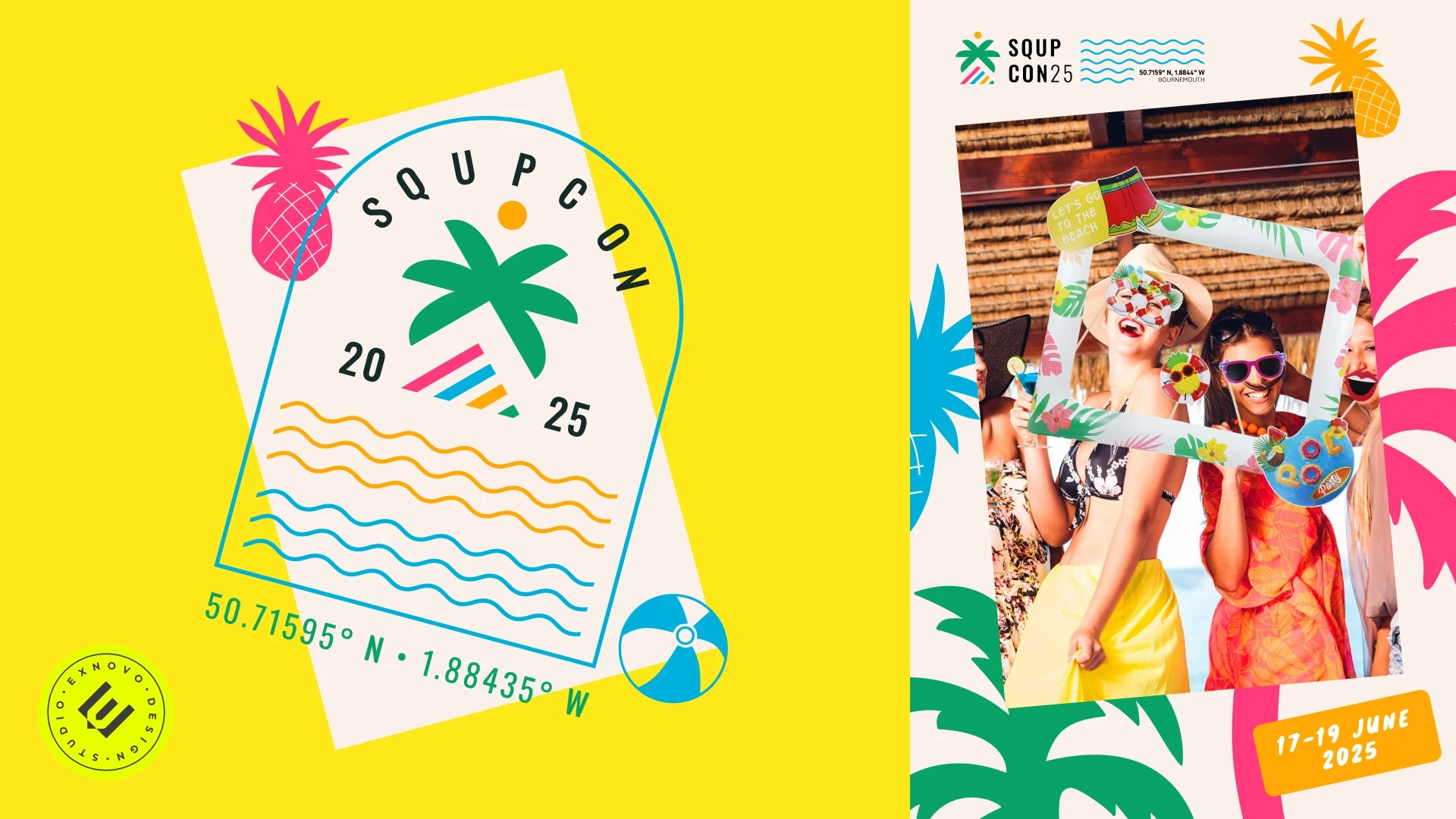 Branded collaterals forSquaredUp's summer event "SQUPcon 2025".Original visual identity concept by Steve Rowland and Conor Richey.