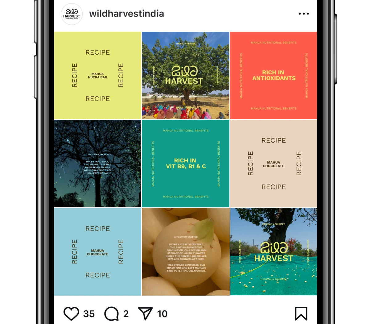 Wild Harvest, a leading supplier of food-grade Mahua flowers, needed a brand identity highlighting their collaboration with indigenous communities for ethical and scientific harvesting. Through working with the founder, the brand was visually positioned to reflect ‘community’ and ‘modernity,’ resulting in a logo design that celebrates heritage while embracing progress.