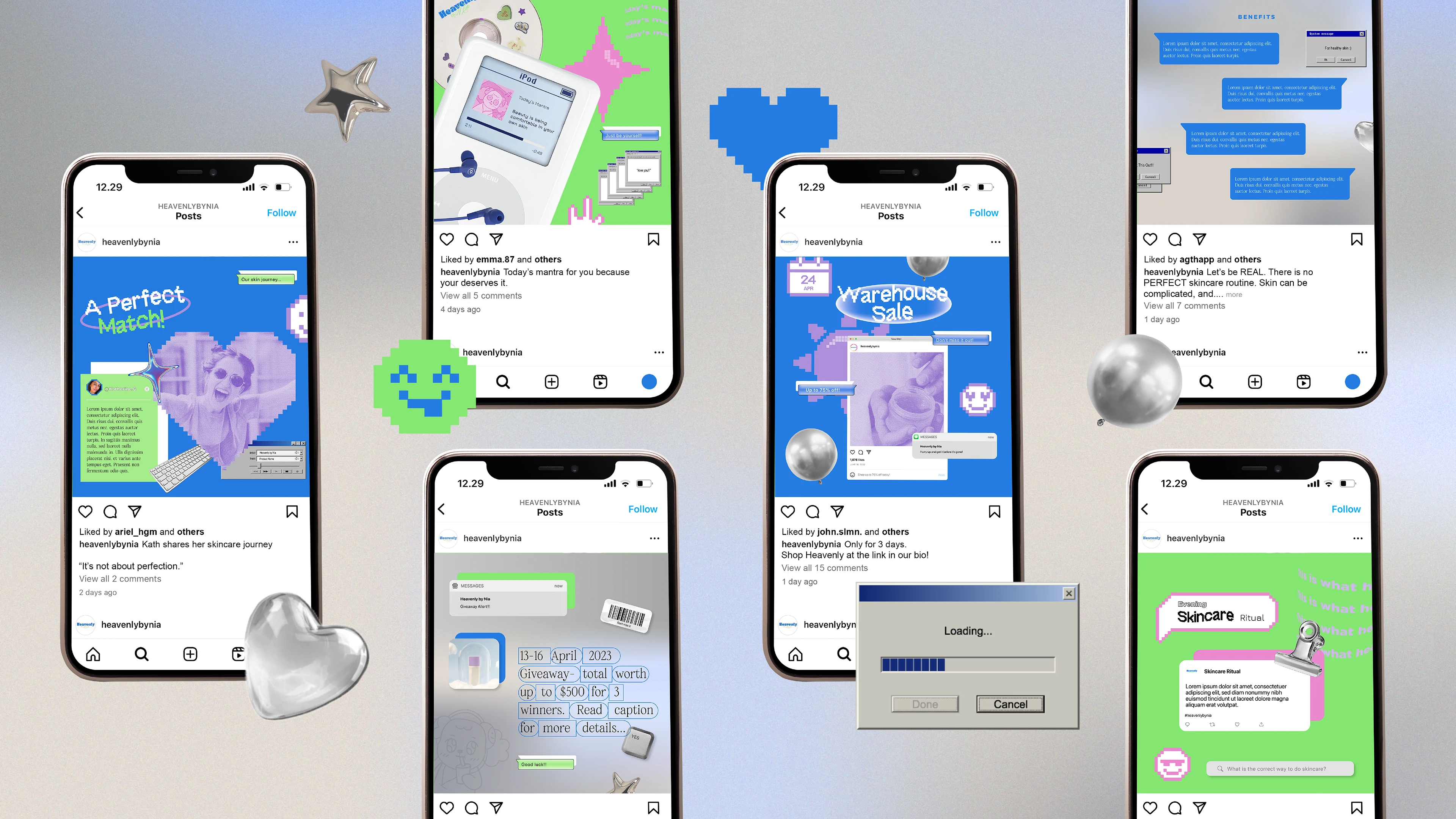 Driven by this gap, Heavenly by Nia was created to help teens understand their skin, embrace these changes with confidence, and celebrate diversity. This brand speaks their language—through bold, digital-native visuals that resonate with their daily lives. The theme of change and inclusivity is reflected in our dynamic typography, blending multiple typefaces to symbolize individuality.