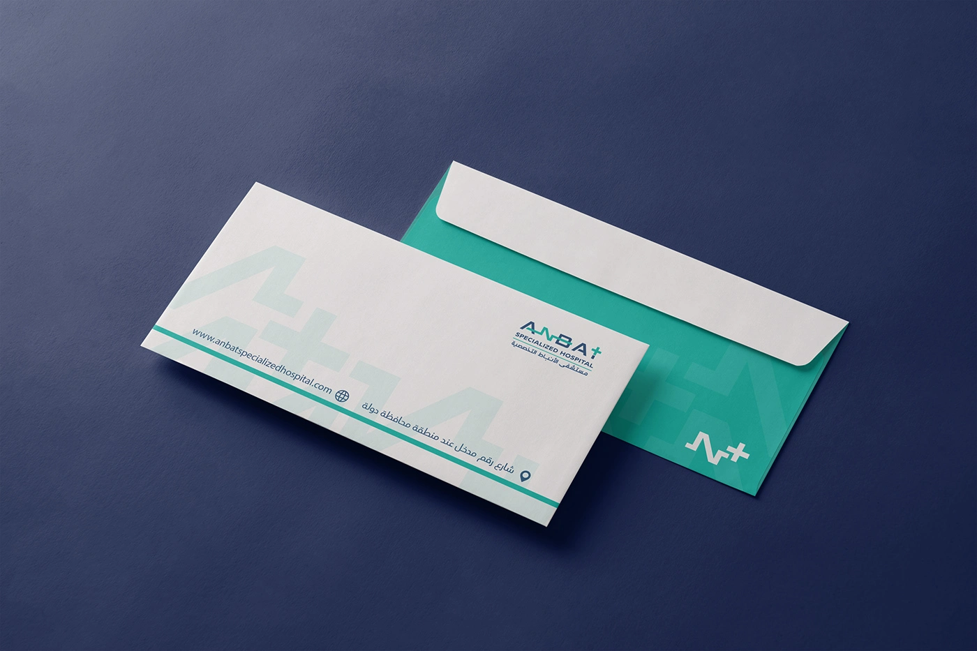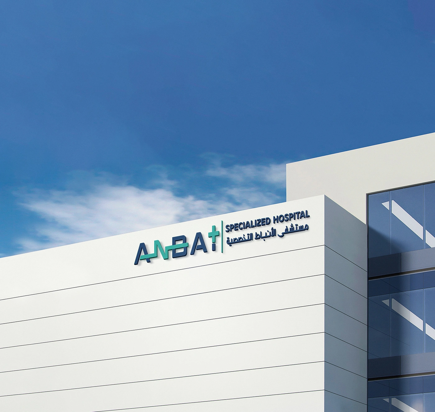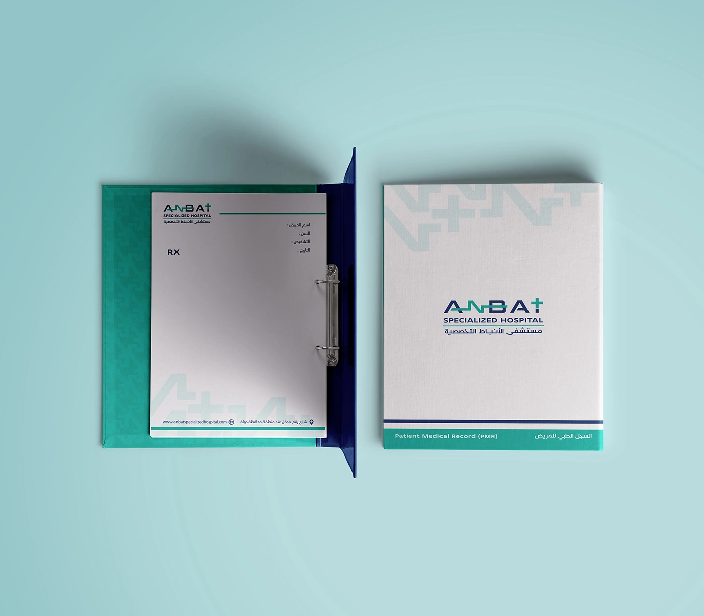 A full brand identity for Anbat Specialized Hospital in Saudi Arabia.