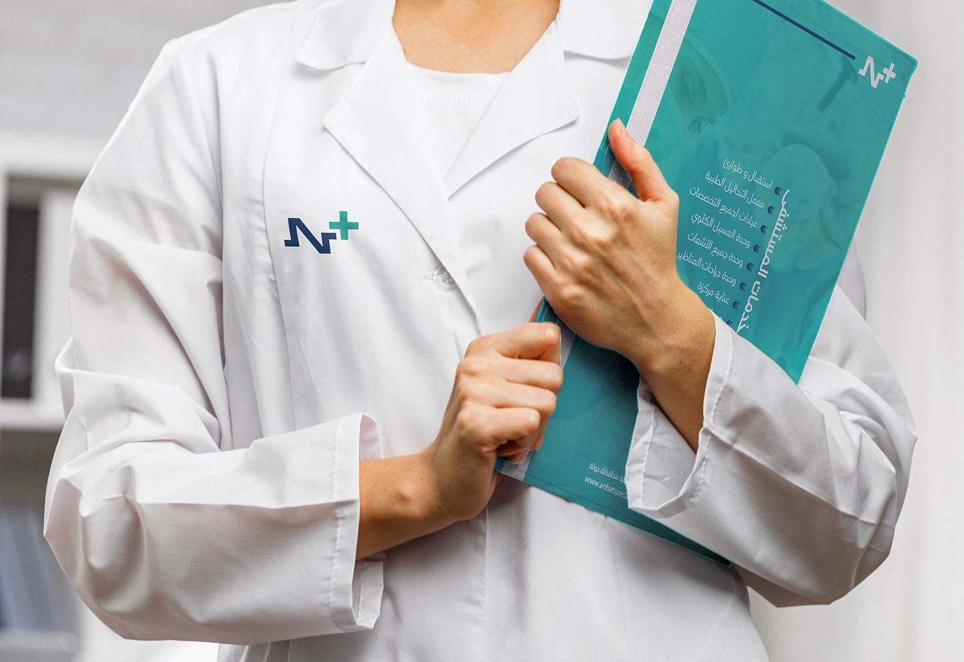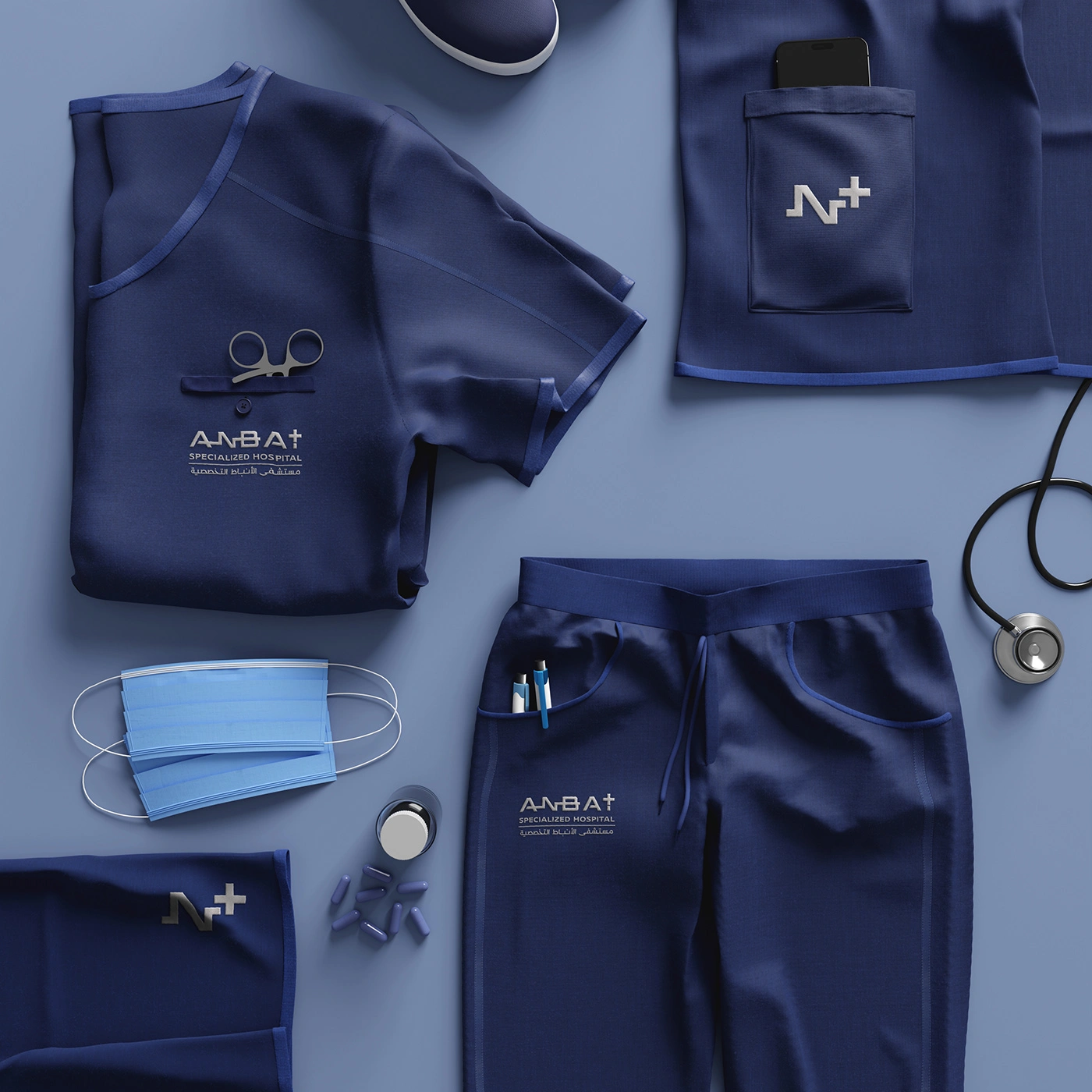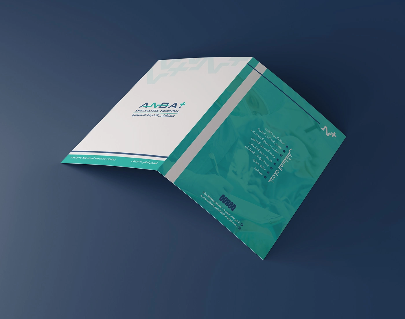 A full brand identity for Anbat Specialized Hospital in Saudi Arabia.
