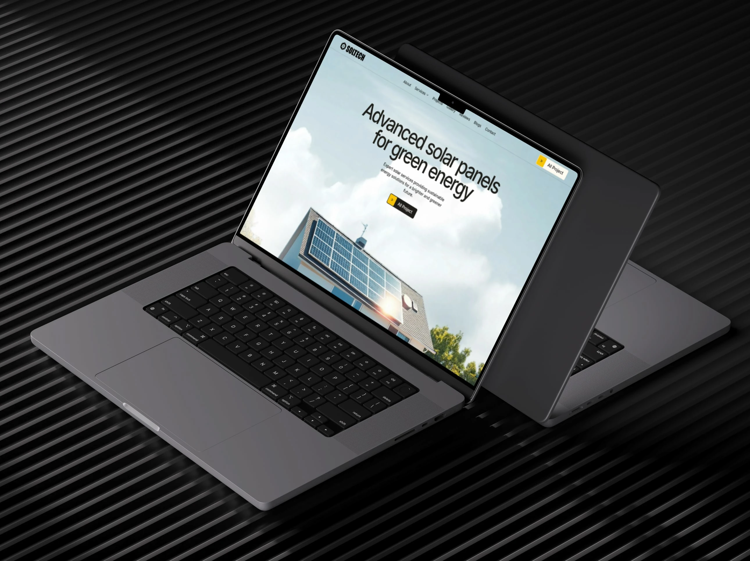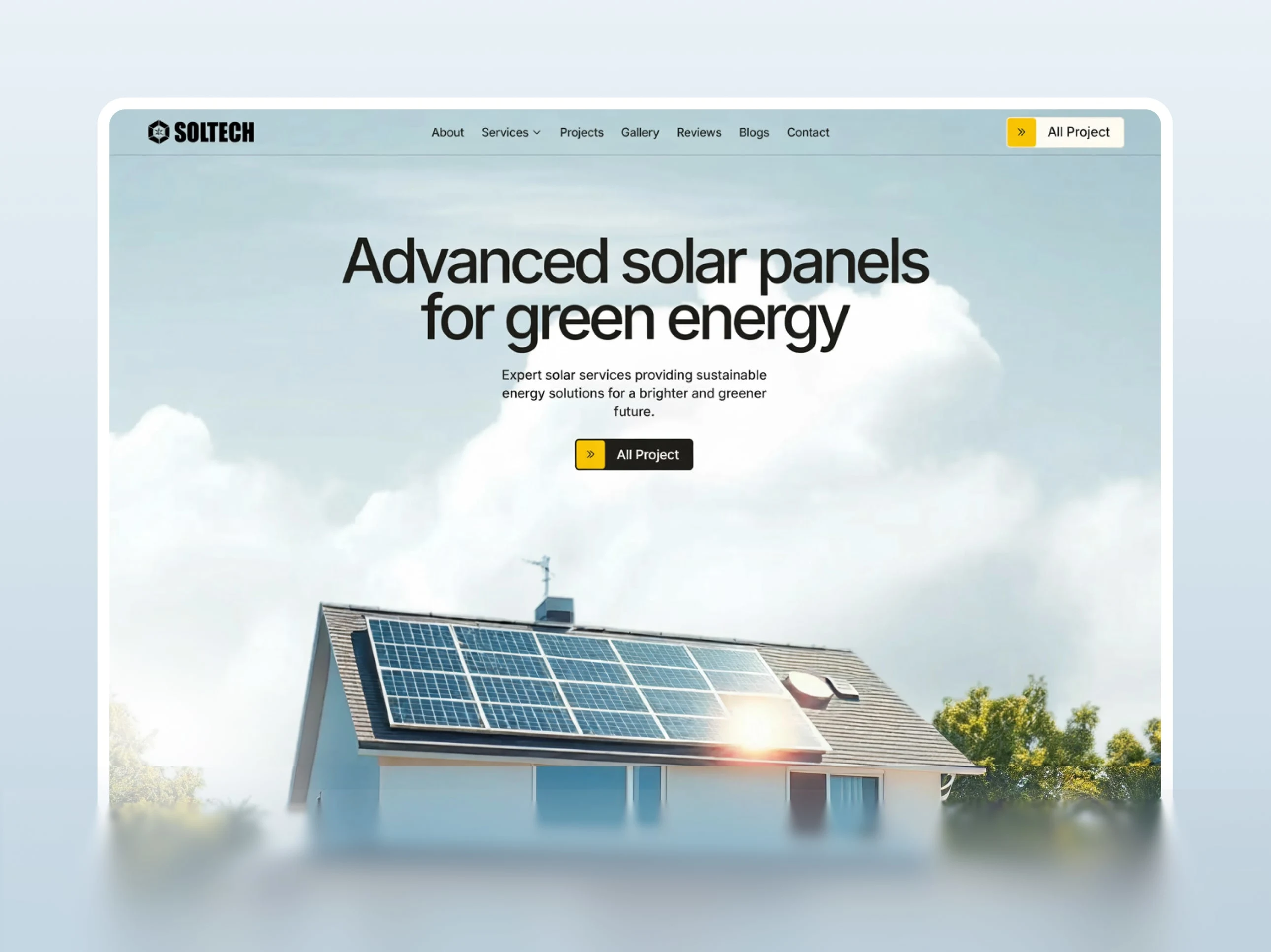 Soltech is a modern and visually bold website created for a clean-tech company looking to communicate innovation, sustainability, and trust. The site blends strong typography, smooth animations, and structured storytelling to present services and brand values clearly and professionally.