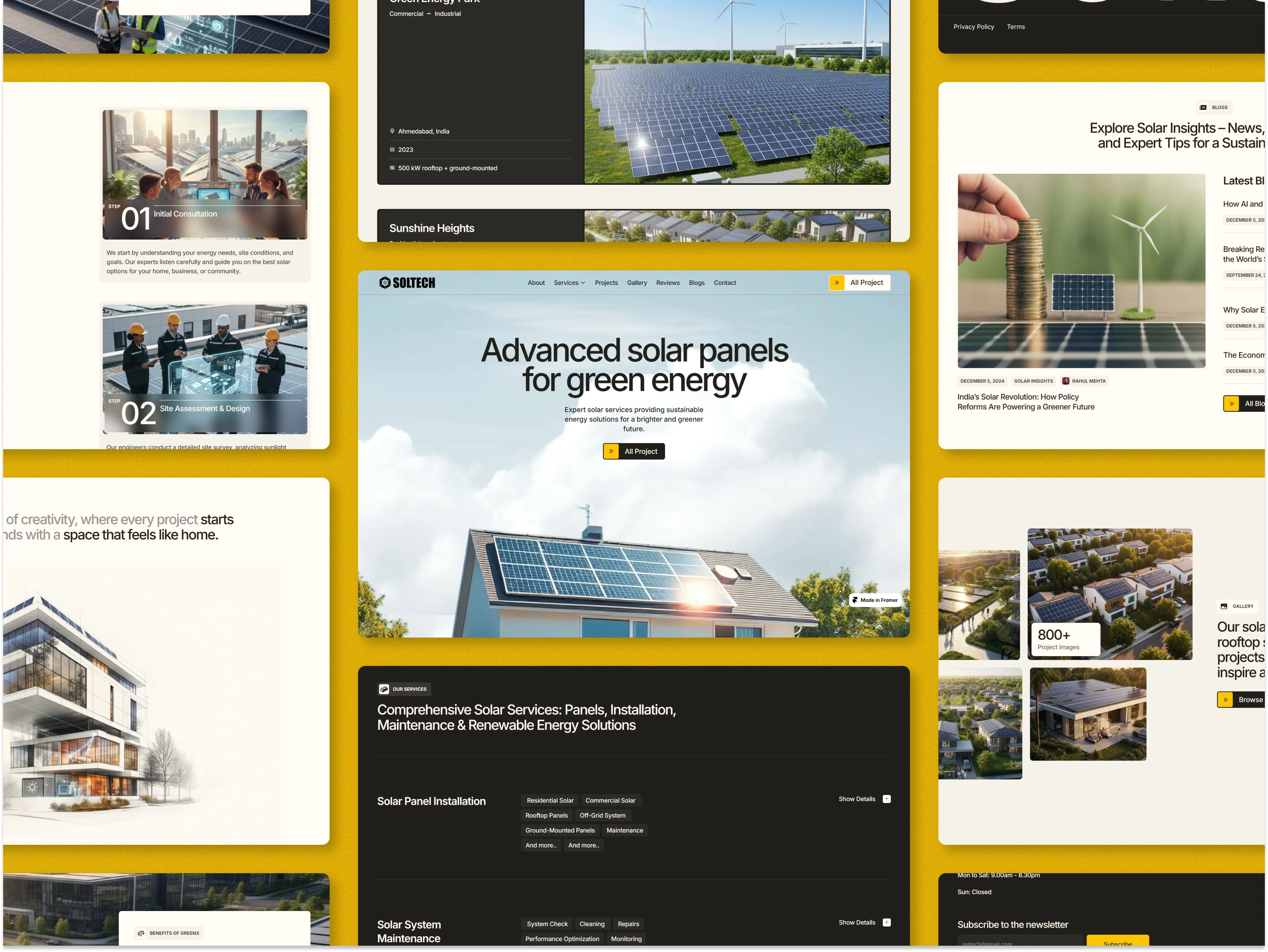 Soltech solar energy platform built in Framer, featuring a clean interface, responsive design, and intuitive user flow for better energy service engagement.