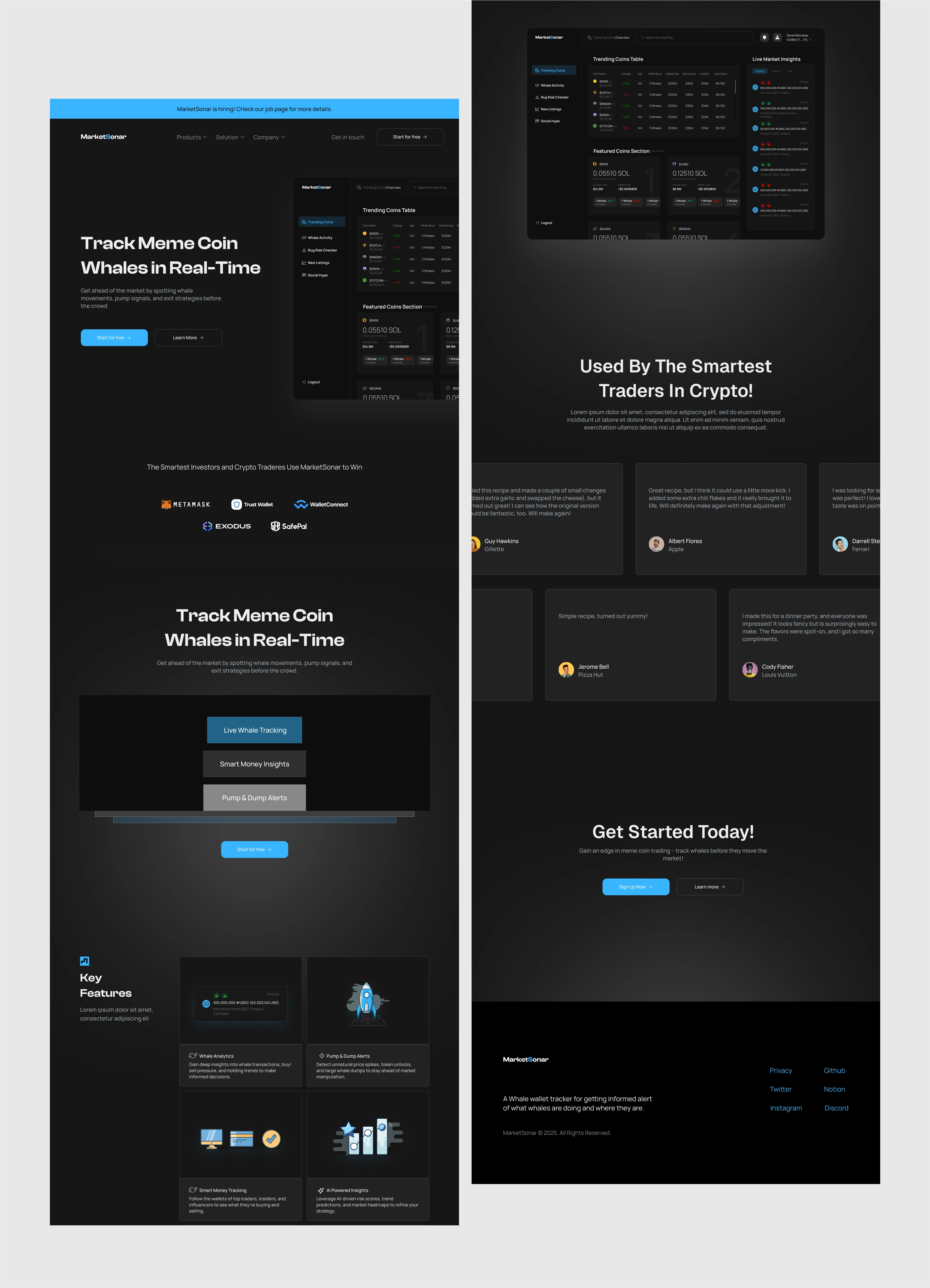 The final product gave Whale Tracker a strong identity in the crowded crypto space. Traders immediately resonated with the sleek dashboard, and the marketing site helped position the tool as a serious edge fast, reliable, and built for the real players in meme coin markets.