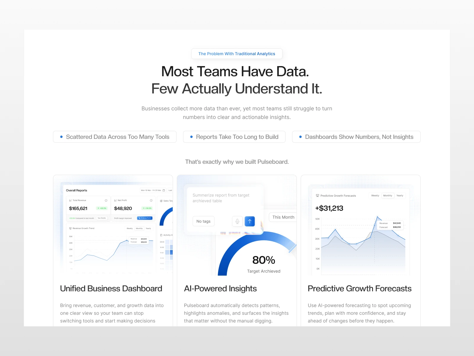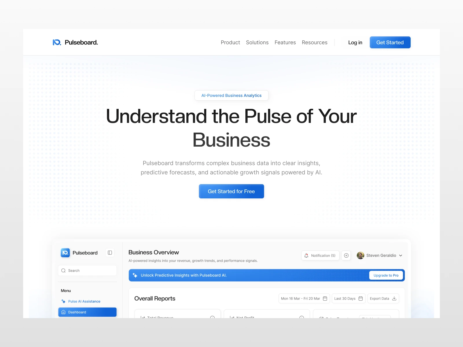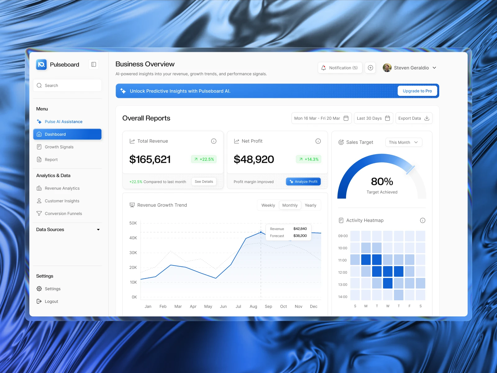 Pulseboard is an AI-powered analytics platform built for teams who want to understand their data and turn it into clear, actionable insights.