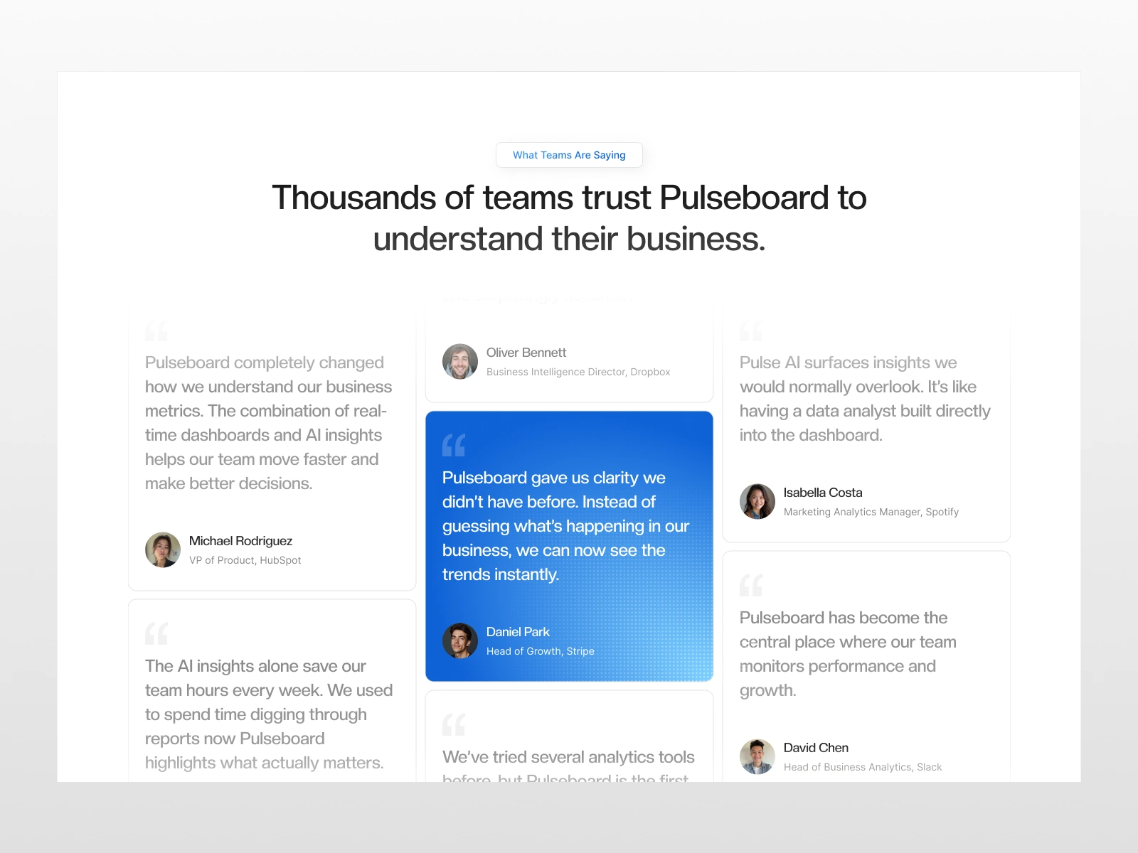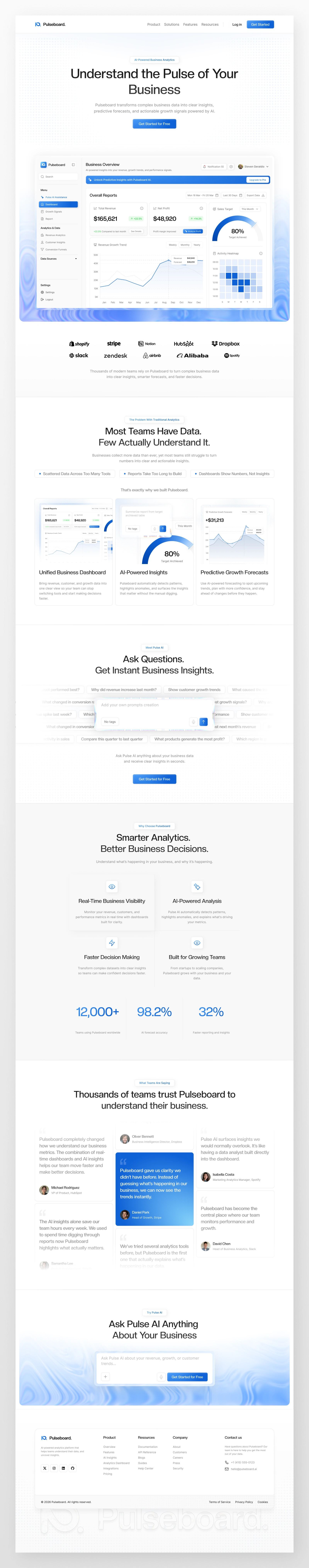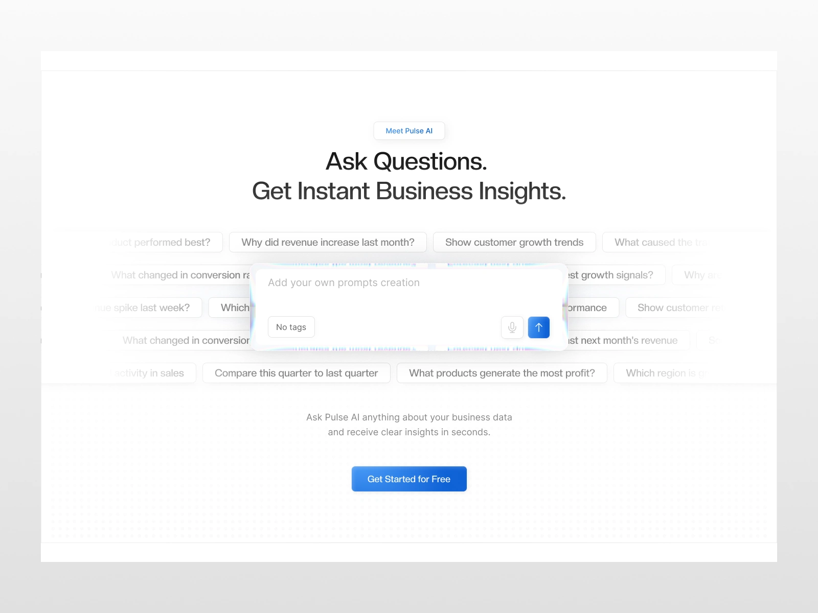 Pulseboard is an AI-powered analytics platform built for teams who want to understand their data and turn it into clear, actionable insights.