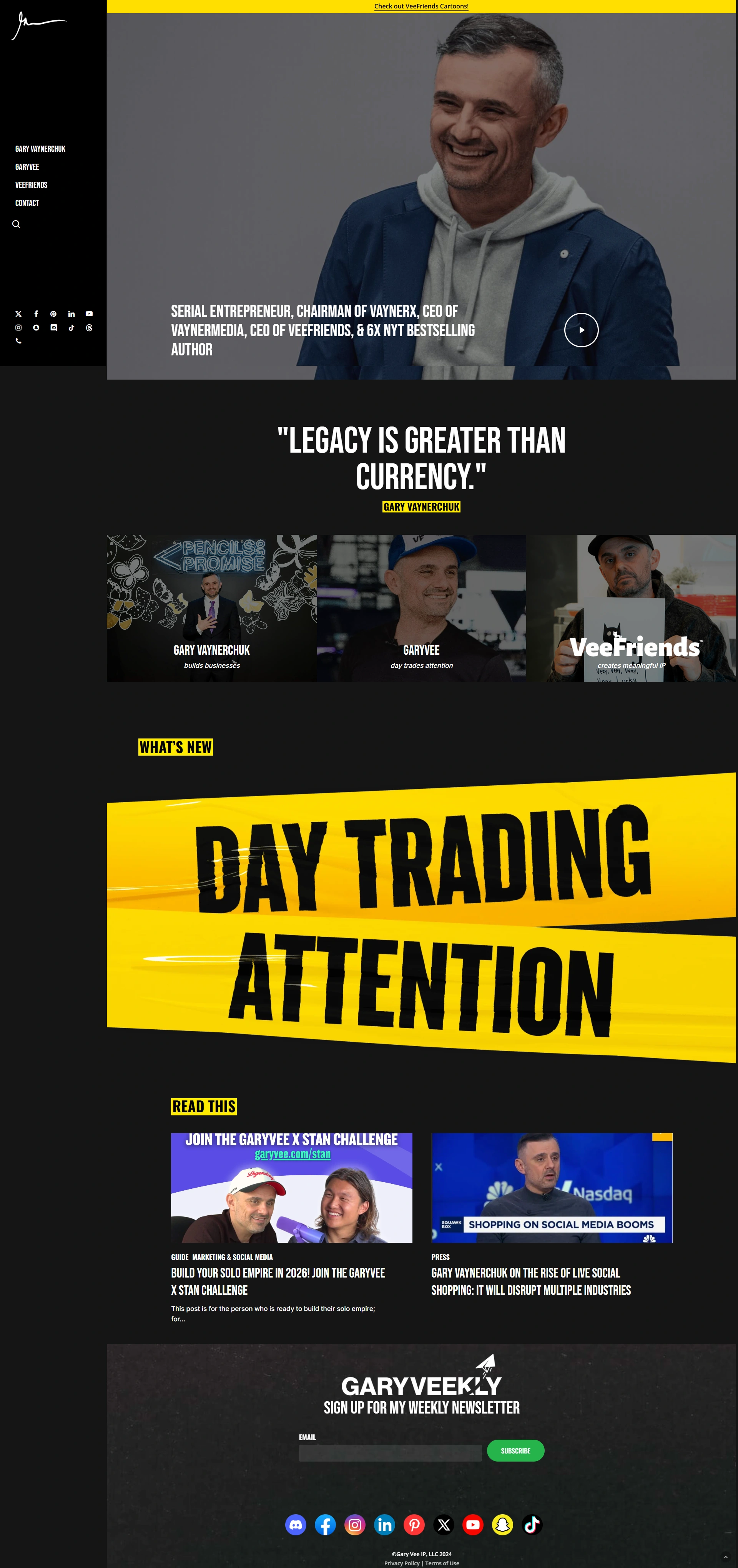 Brand / Personal Identity Integration: Aligning UI/UX with Gary’s brand, integrating IP (VeeFriends), social presence, event/book promotion.