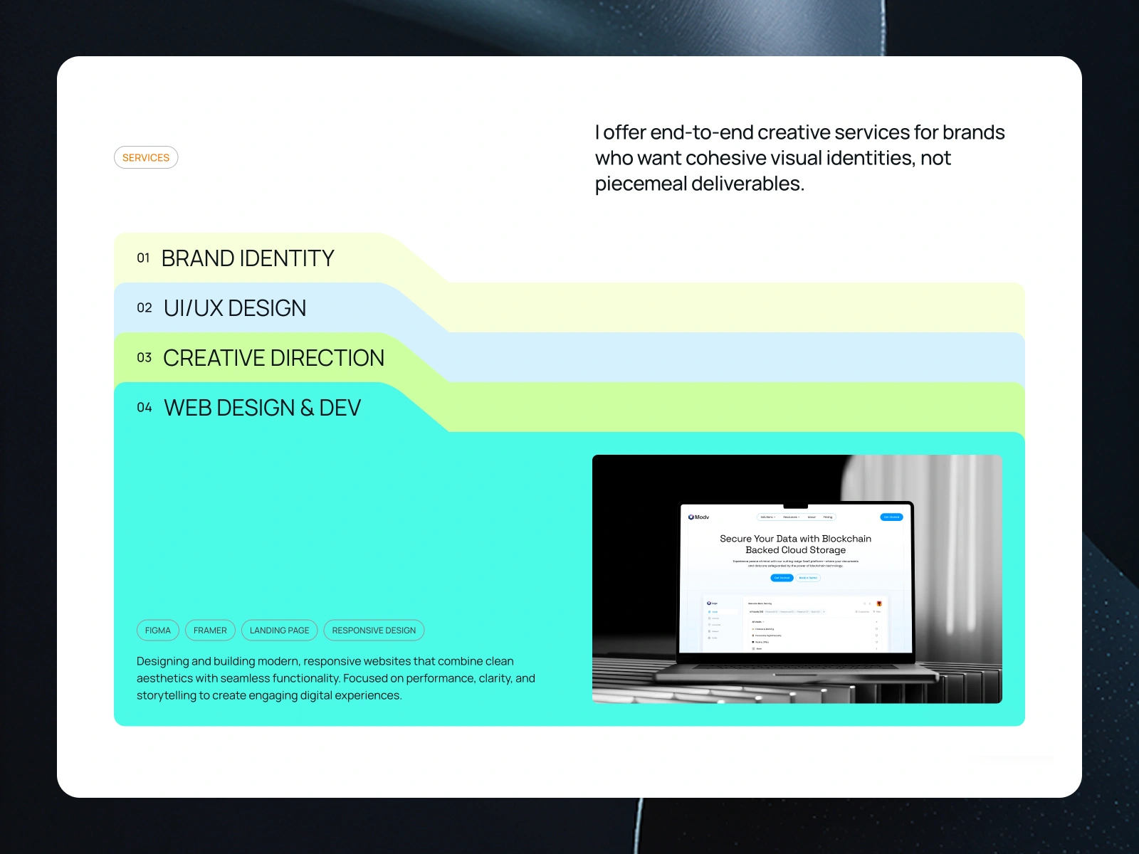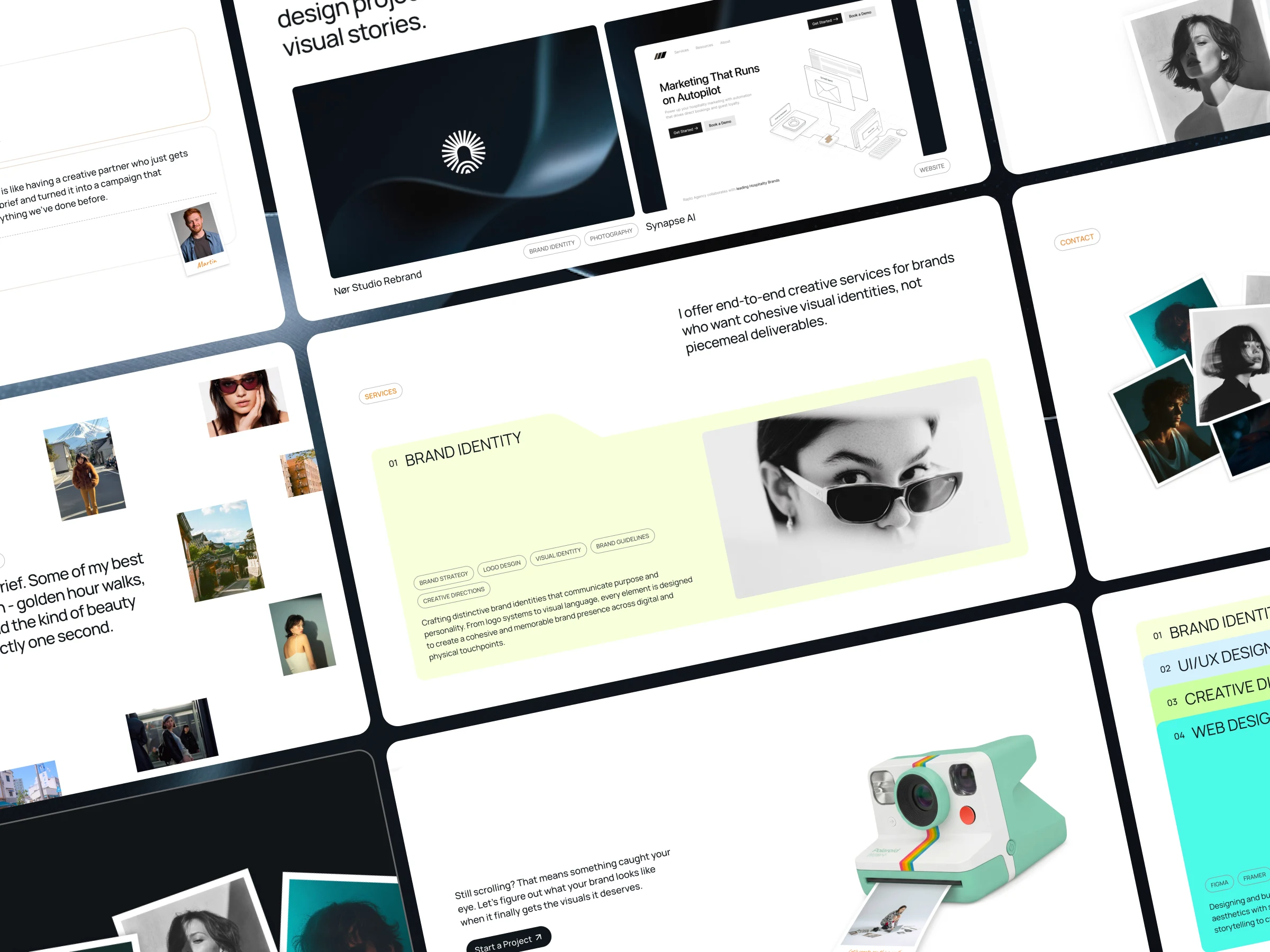 Whether you're a brand designer, UI/UX designer, photographer, or creative director. This template gives you a professional portfolio that looks custom-built, without the custom-build timeline or budget.