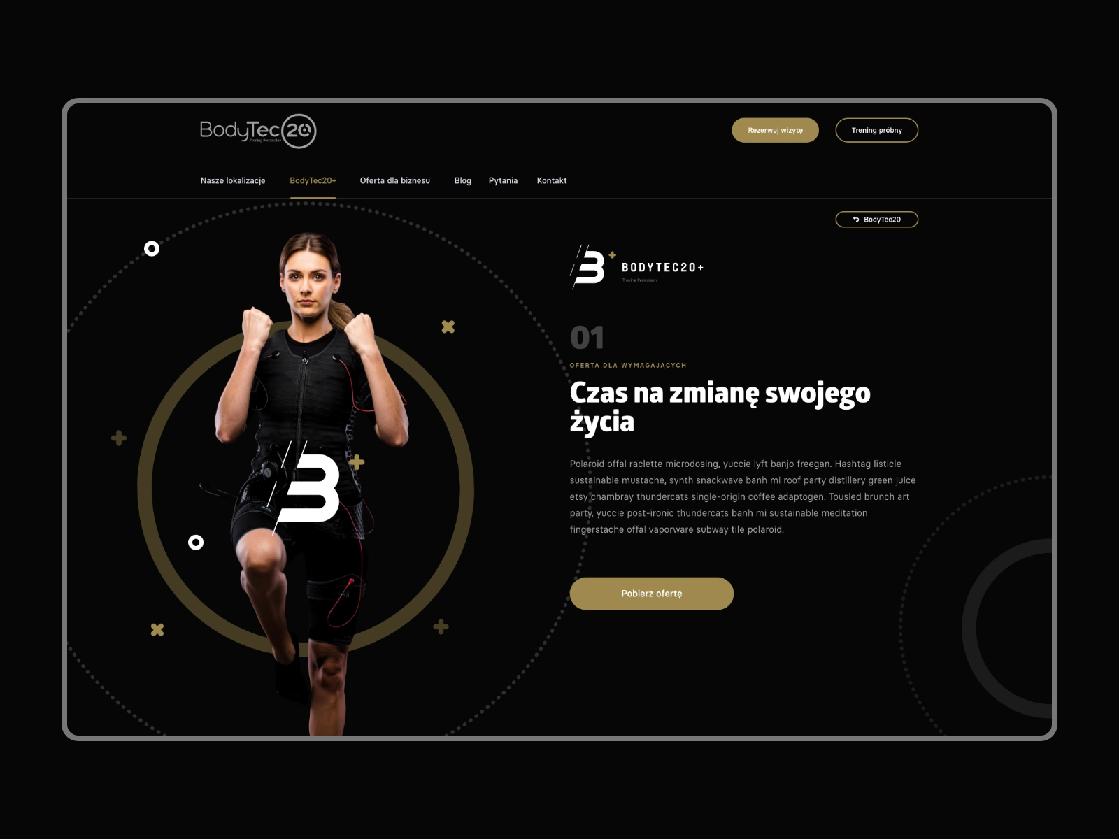 Landing page for the network of EMS studios from Poland - Bodytec20+. Elegant dark identify was created also by me :) Do you like this colour connection, black and gold/brown? Let me know.