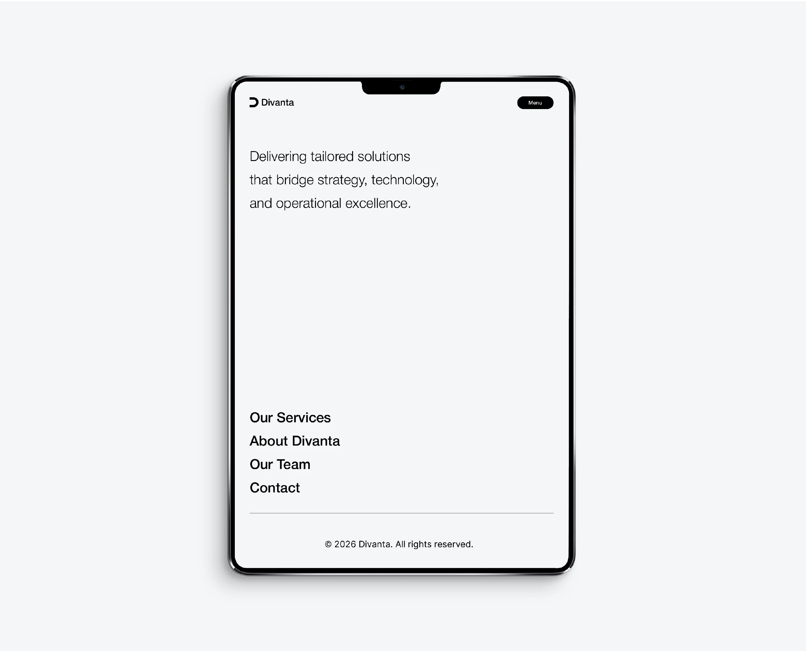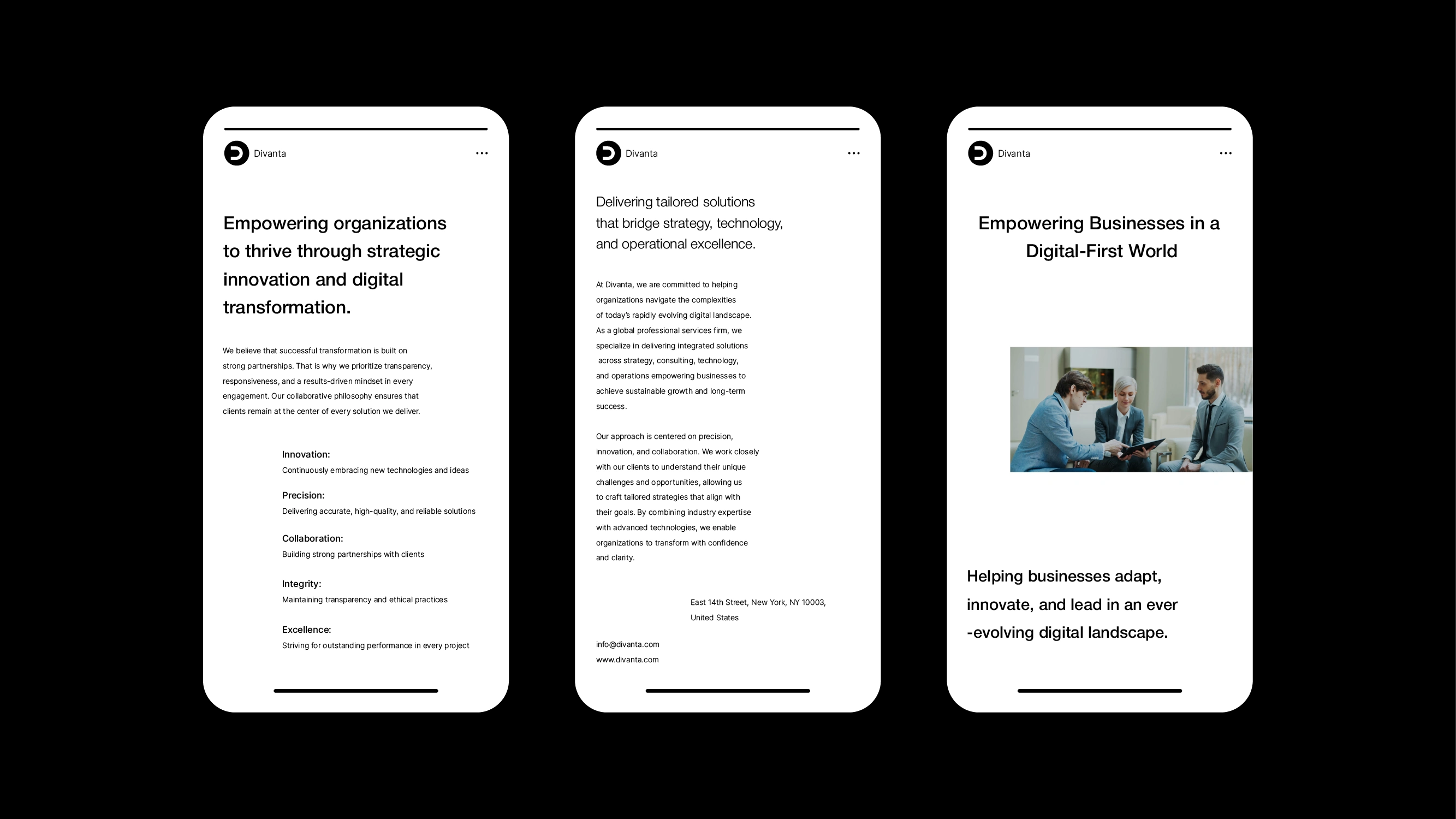 Divanta is a global professional services firm focused on enabling digital transformation across industries. The brand stands for precision, innovation, and strategic excellence, helping organizations navigate complex business challenges through integrated solutions in strategy, consulting, technology, and operations. Divanta positions itself as a trusted partner that delivers tailored, forward-thinking solutions designed for long-term impact.