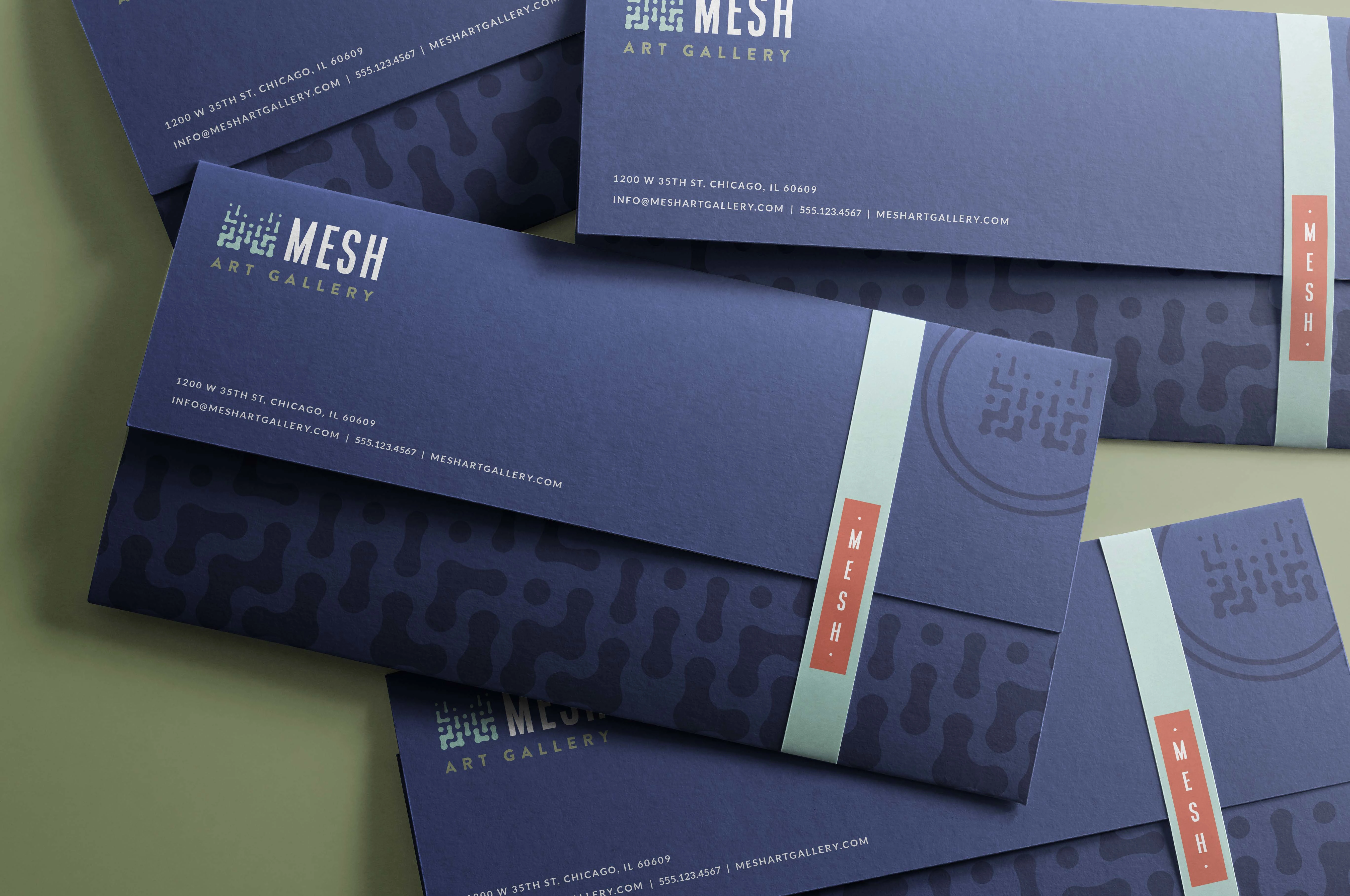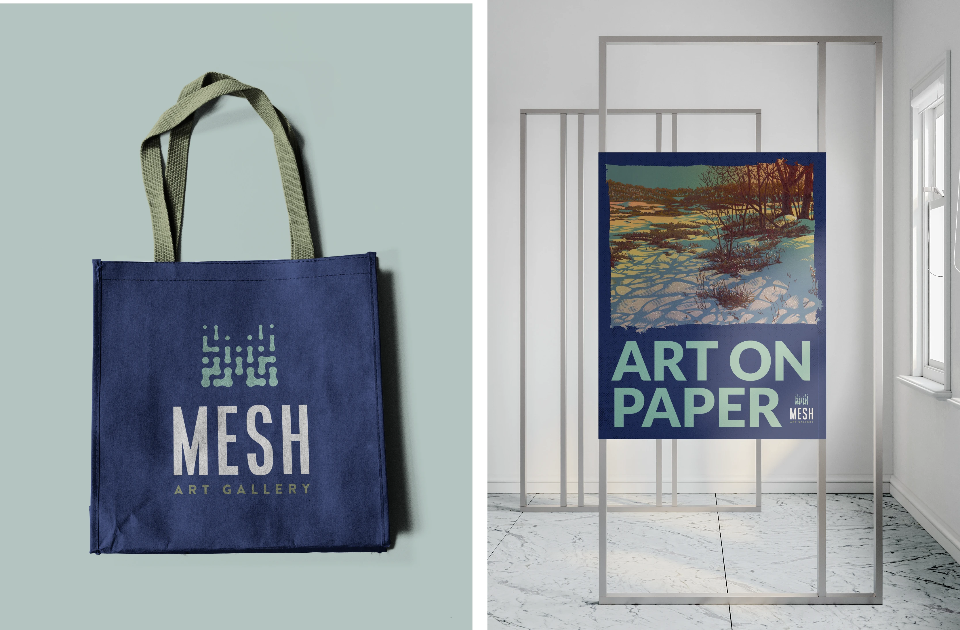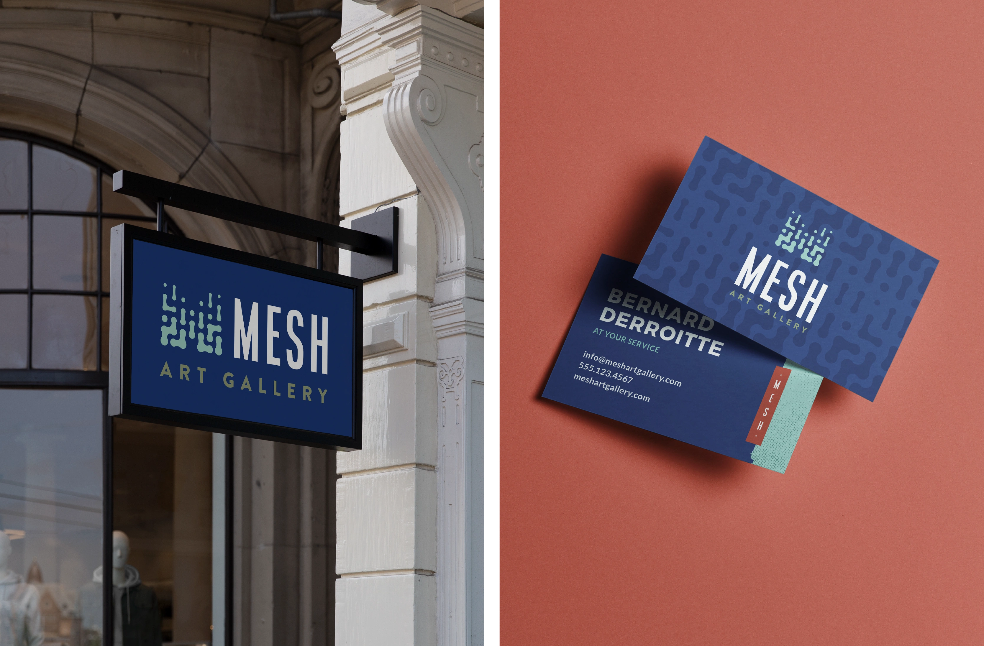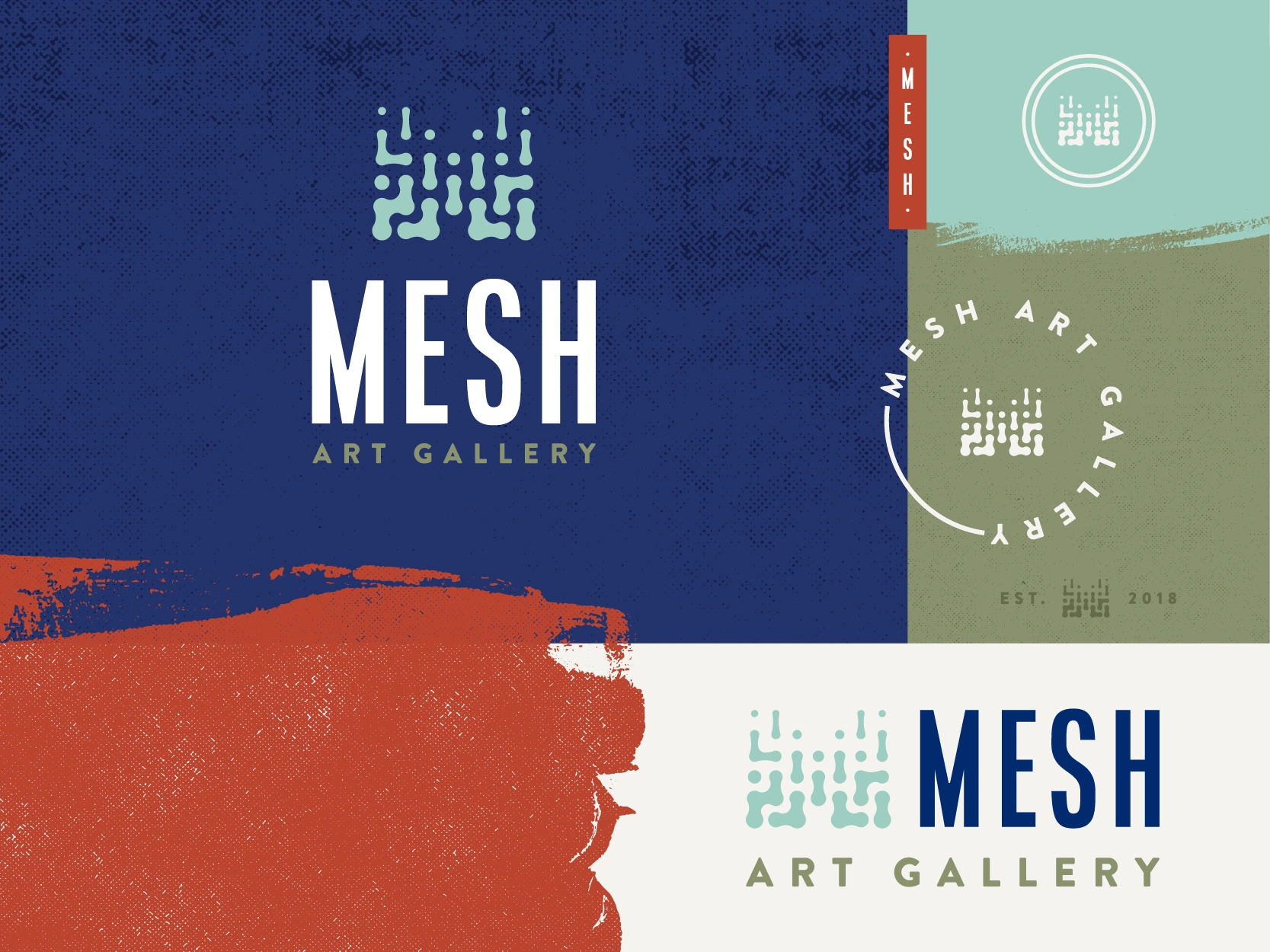 I created a full brand suite including strategy, logo, brand marks, color palette, typography, and a custom brand pattern. The centerpiece of the brand is a fluid, abstract “M” mark made from morphing, connected blobs—a nod to the collaborative, ever-evolving nature of the art world and the relationships Mesh fosters between artists and collectors.