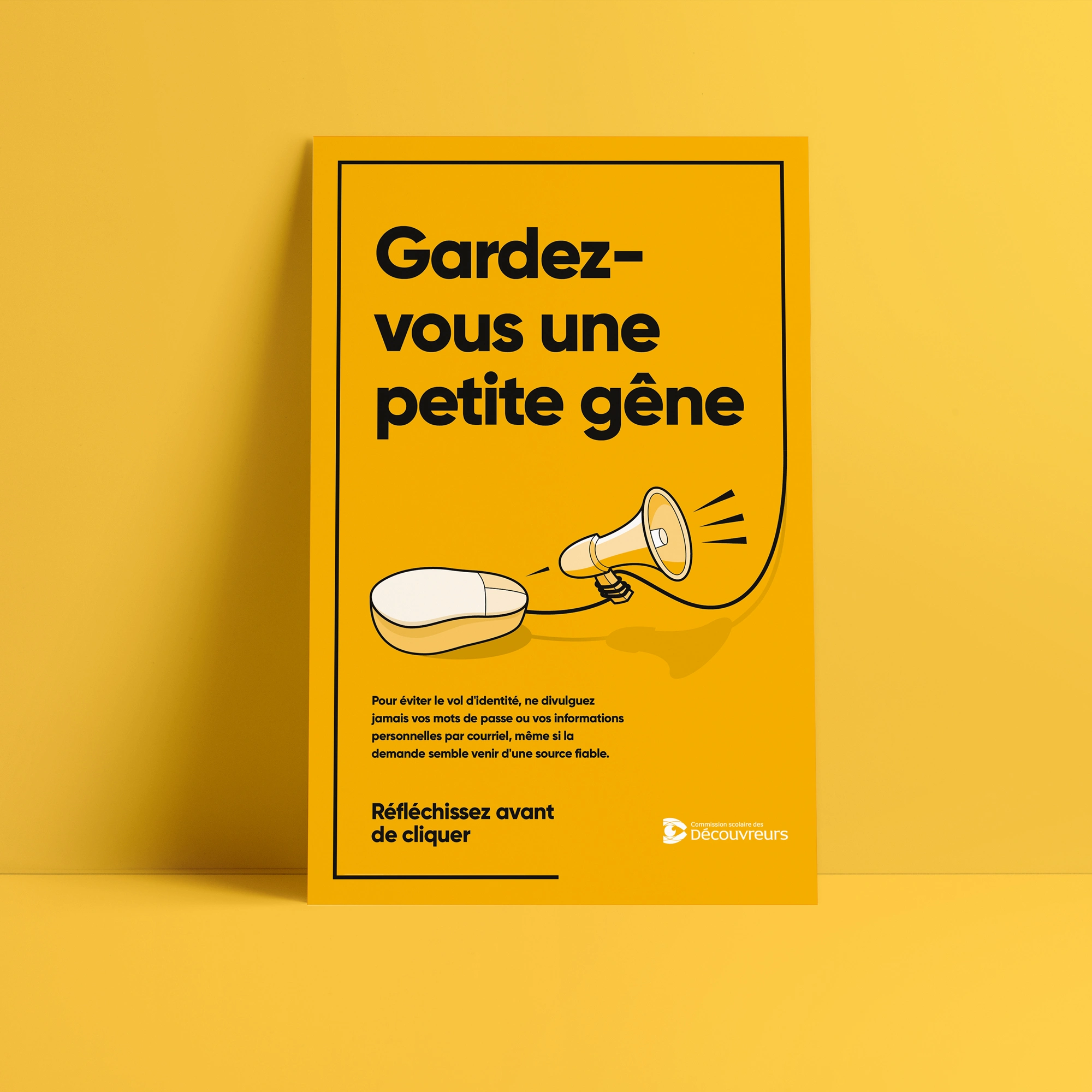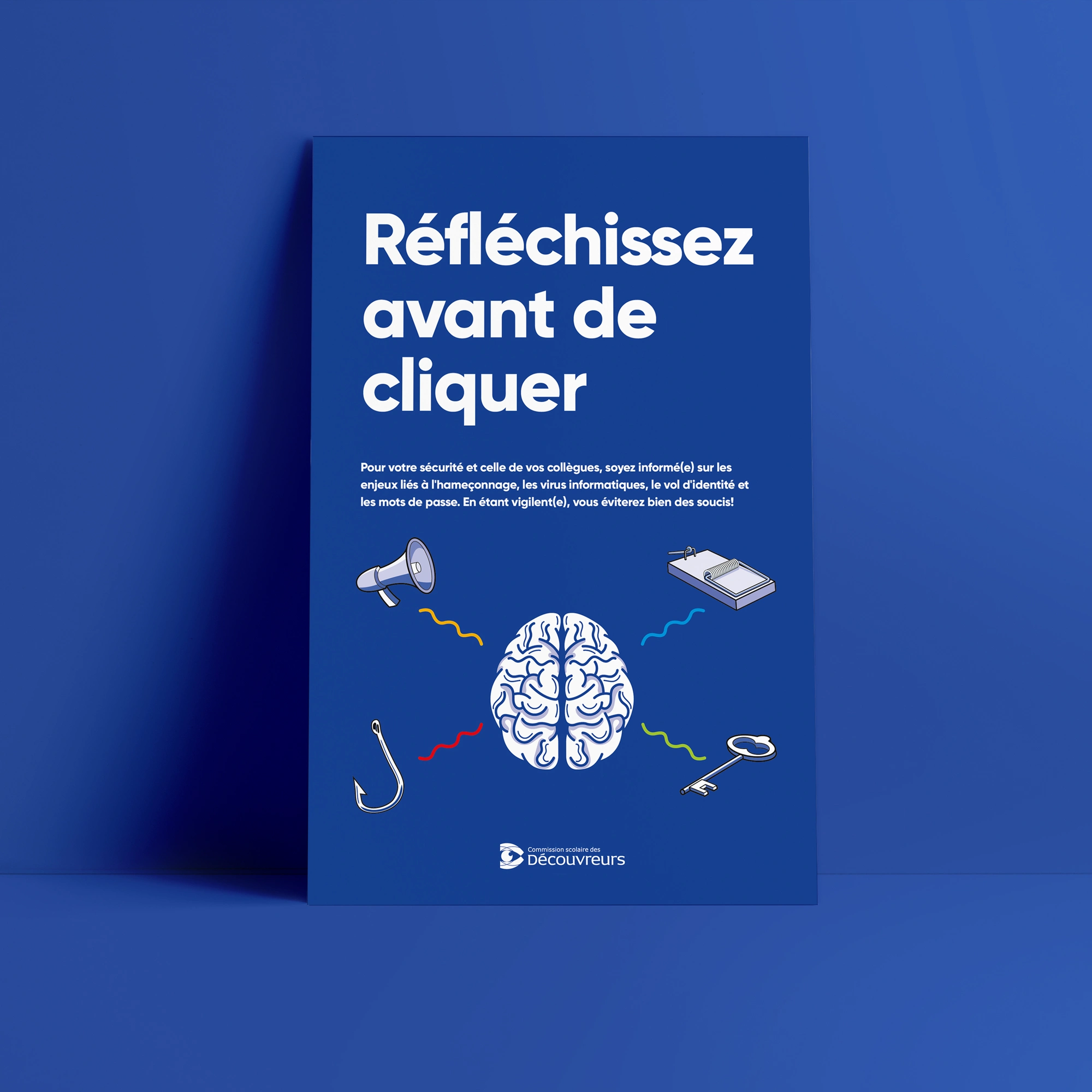 As part of a cybersecurity initiative, the Commission scolaire des Découvreurs (school district) aimed to raise awareness among students and staff about the risks associated with fraudulent emails. In collaboration with a marketing strategist and a copywriter, I designed a series of five impactful posters.