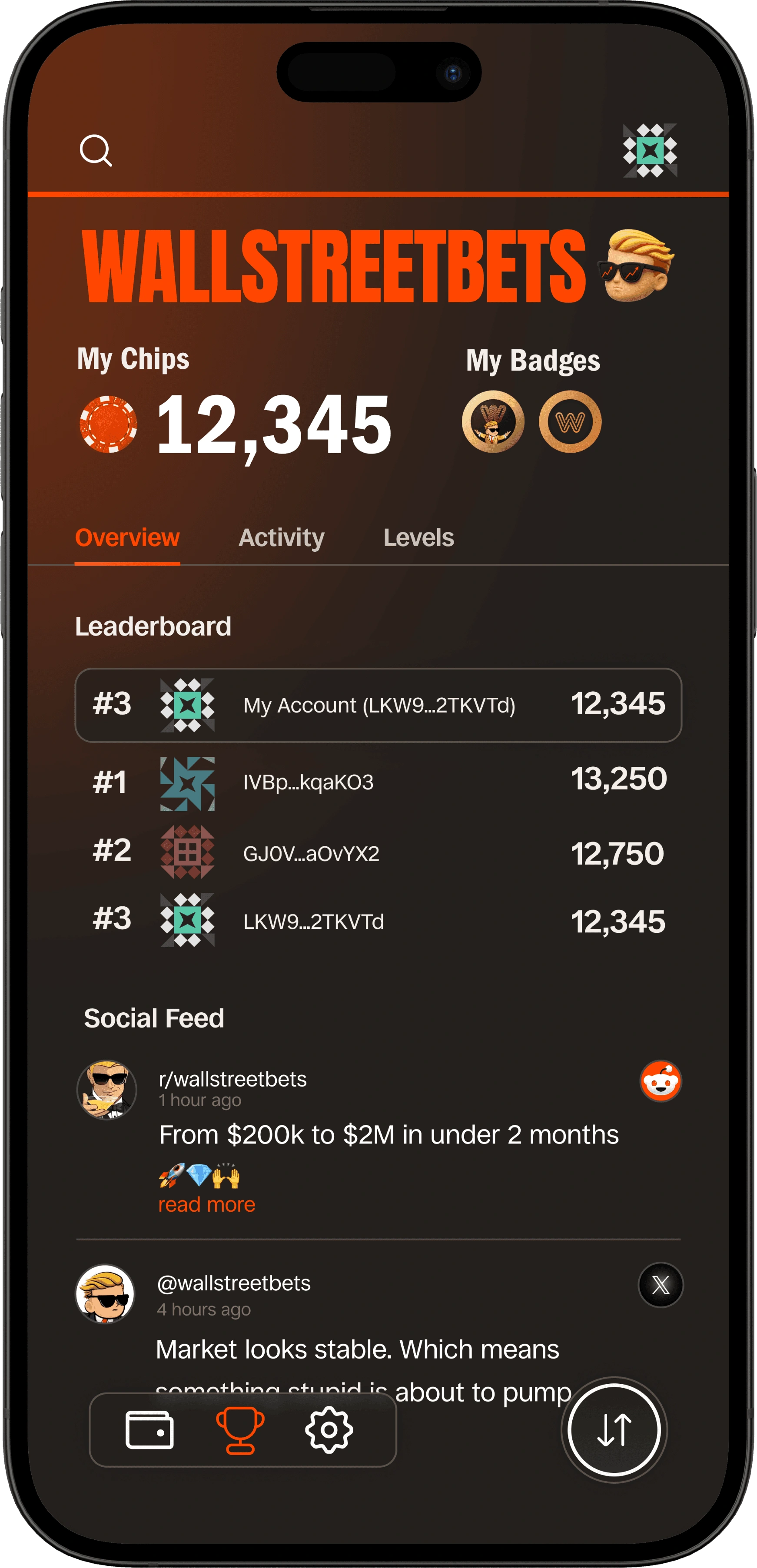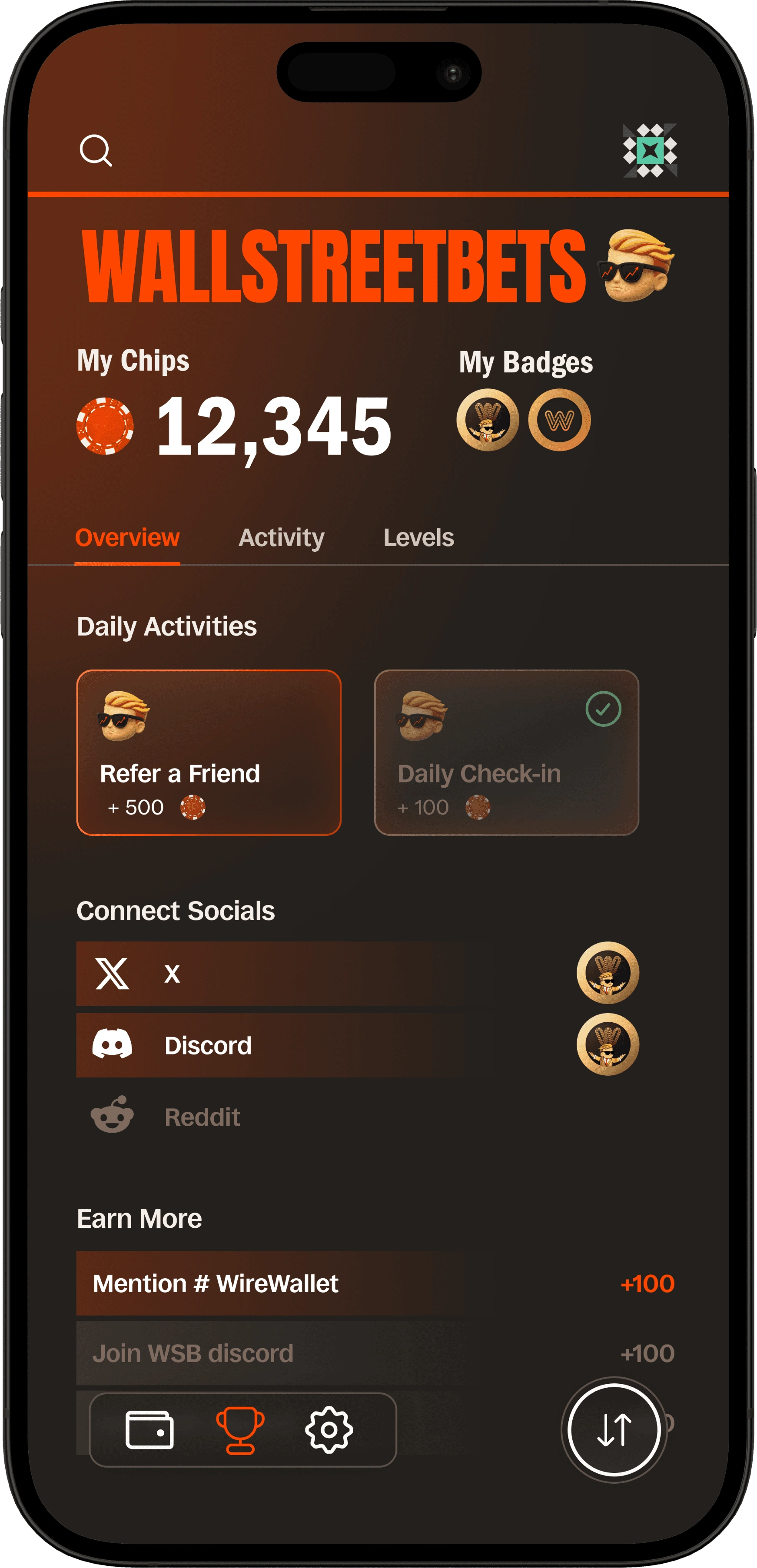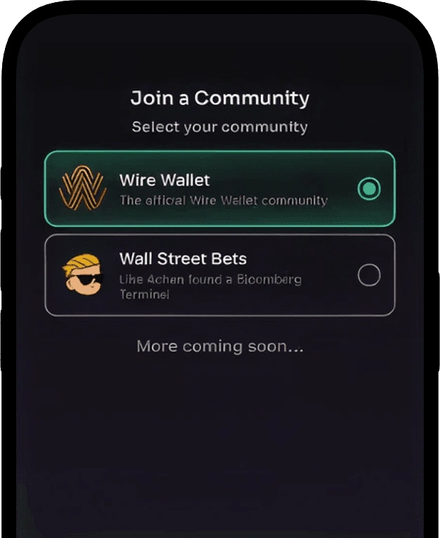 WallStreetBets is the first community launching inside Wire Wallet with its own dedicated hub. Members can see their identity, unlock token access, and earn rewards through participation in one clear experience.