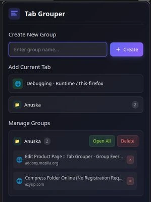 I created Tab Grouper, a powerful Firefox extension designed to help users manage dozens of open tabs with ease. It automatically groups related tabs based on domain, title keywords, or user-defined rules — making multitasking and workflow organization simple and stress-free.