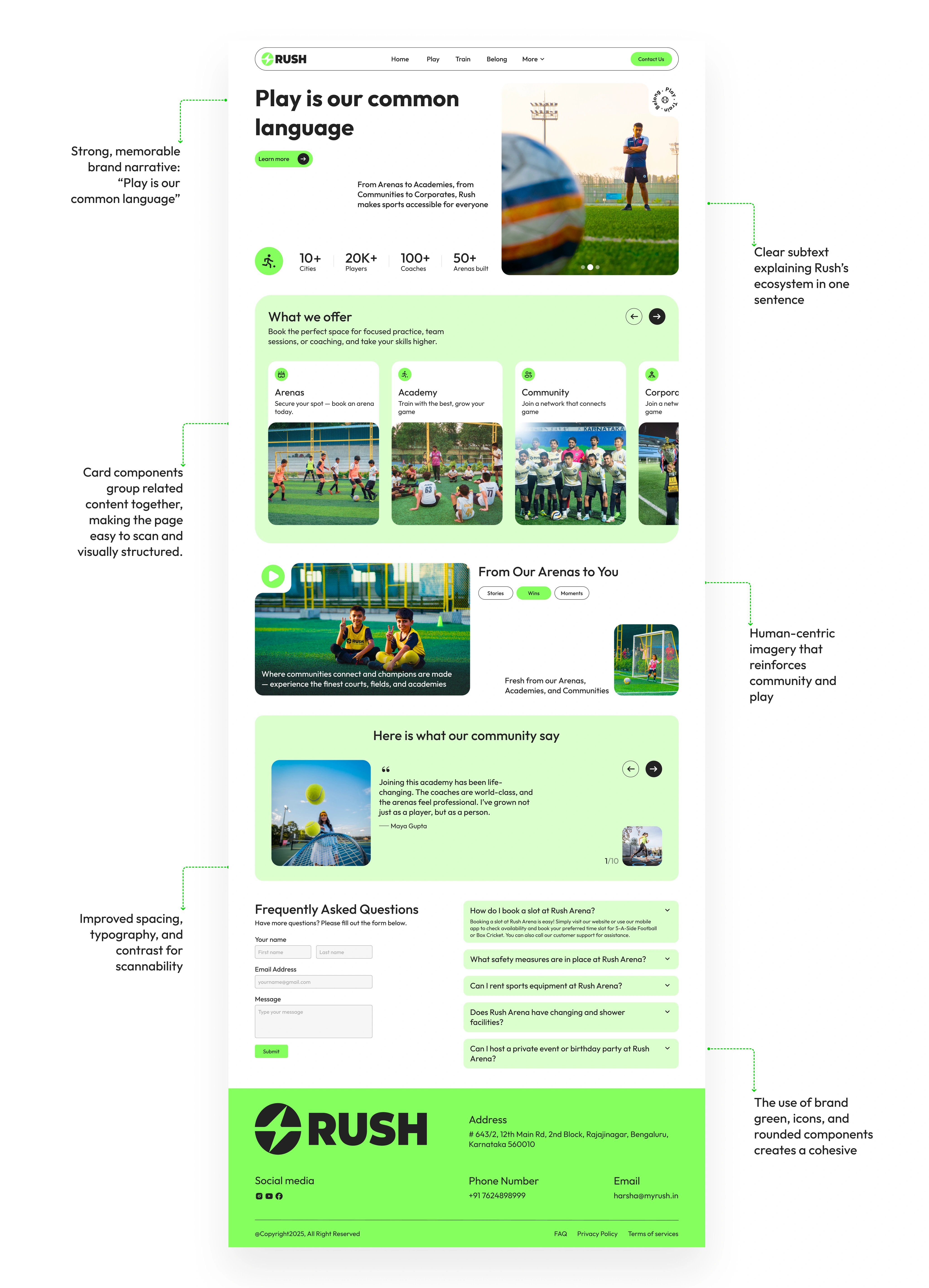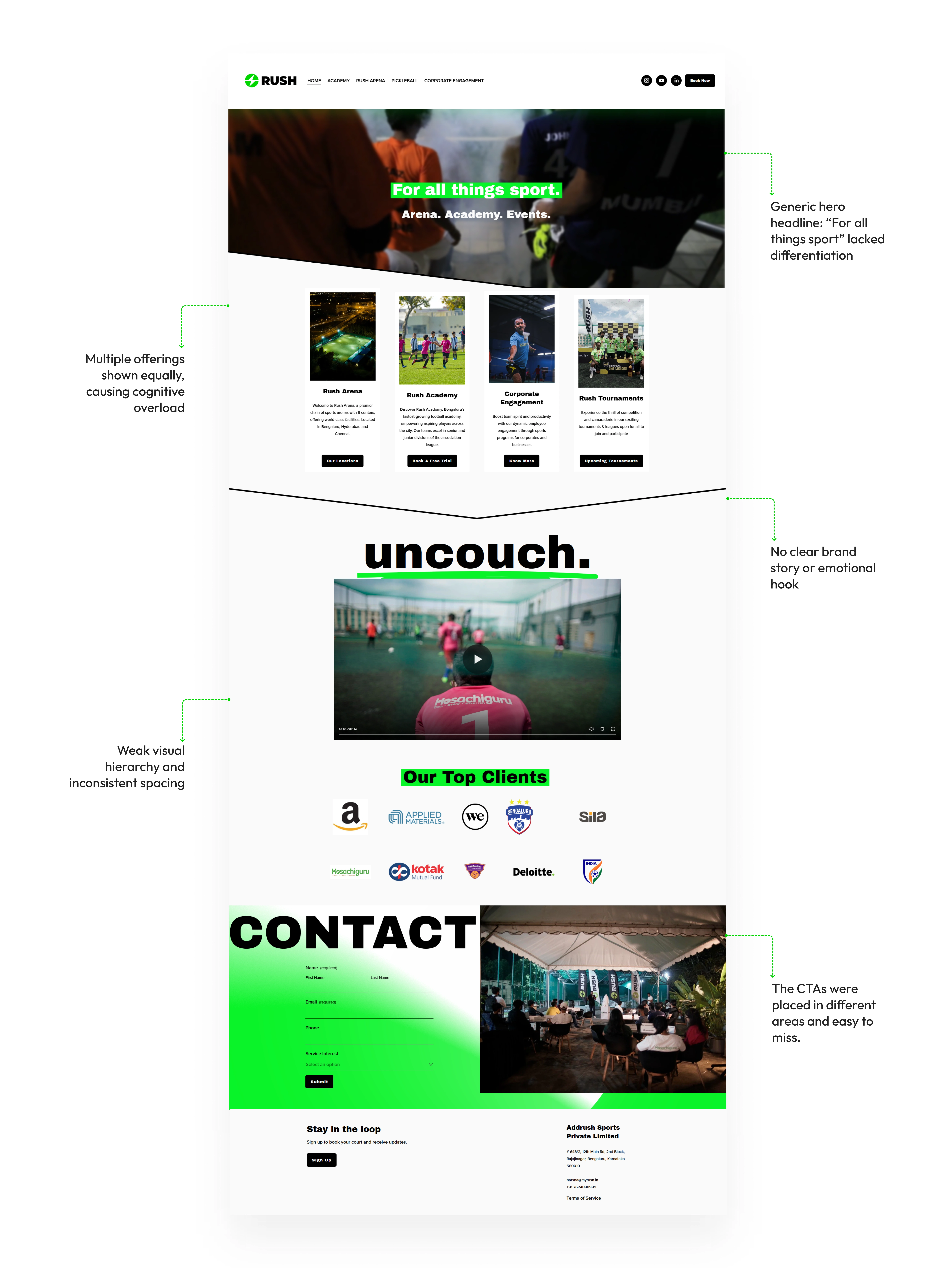 Redesign of Rush Sports website to enhance user engagement and clarity.