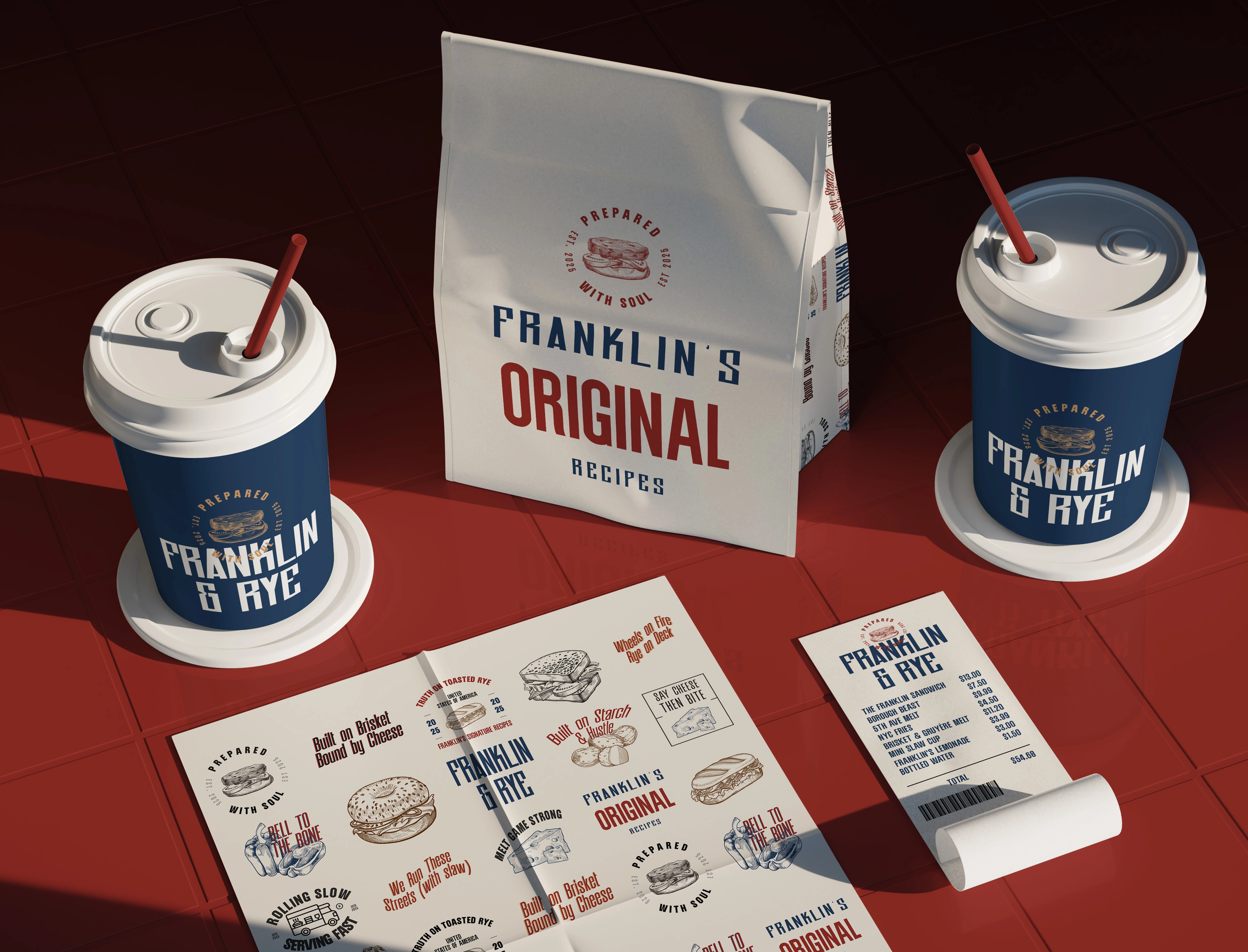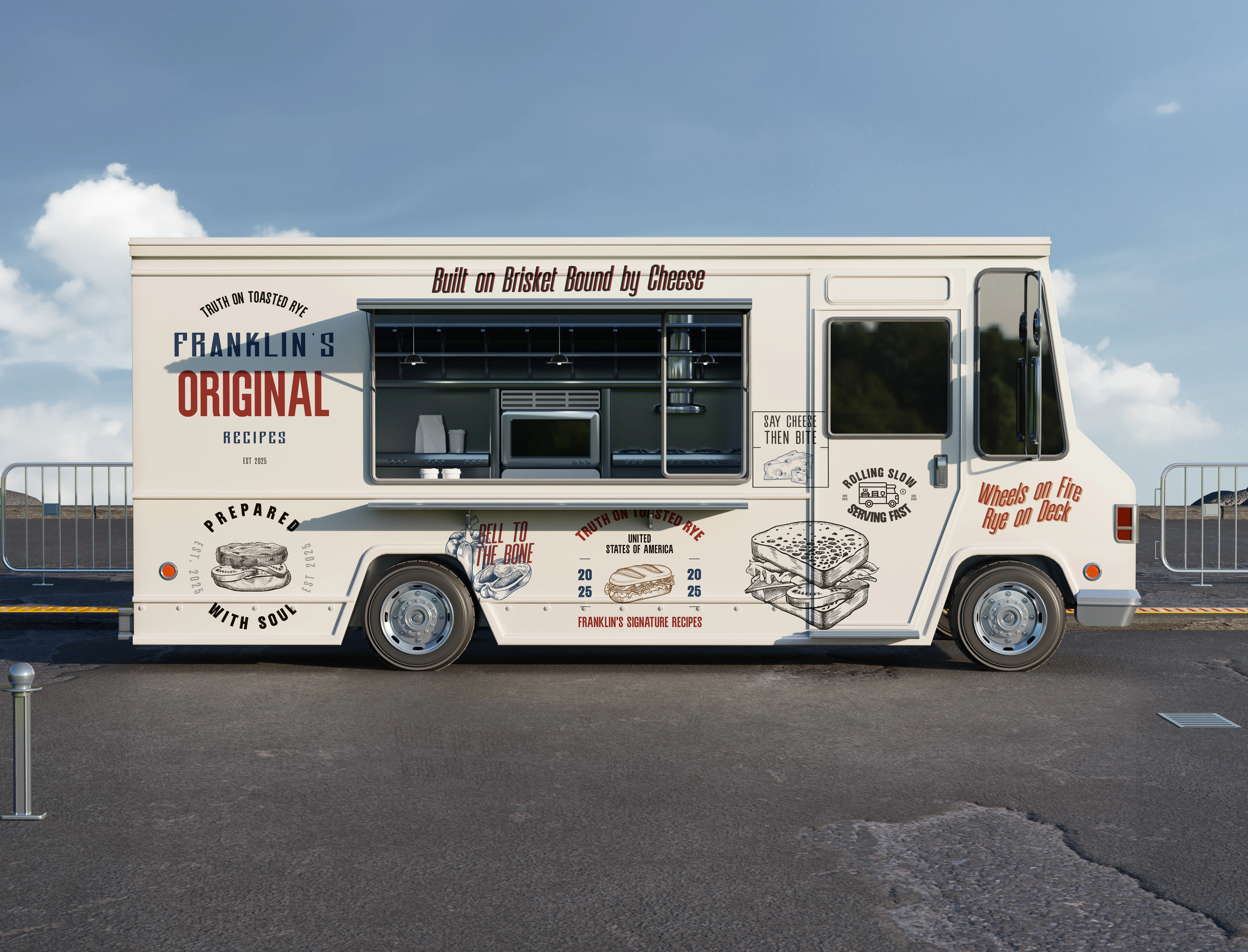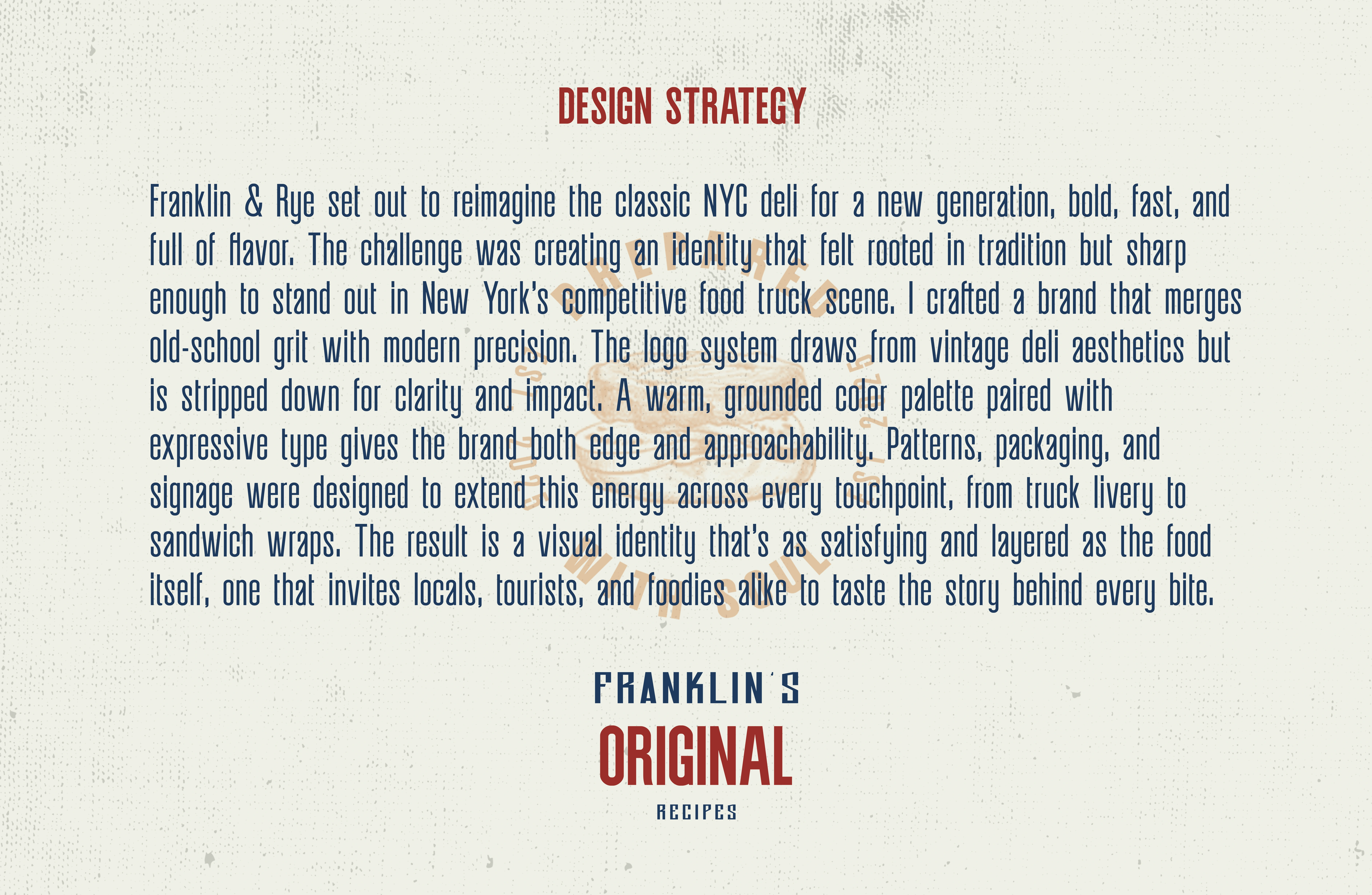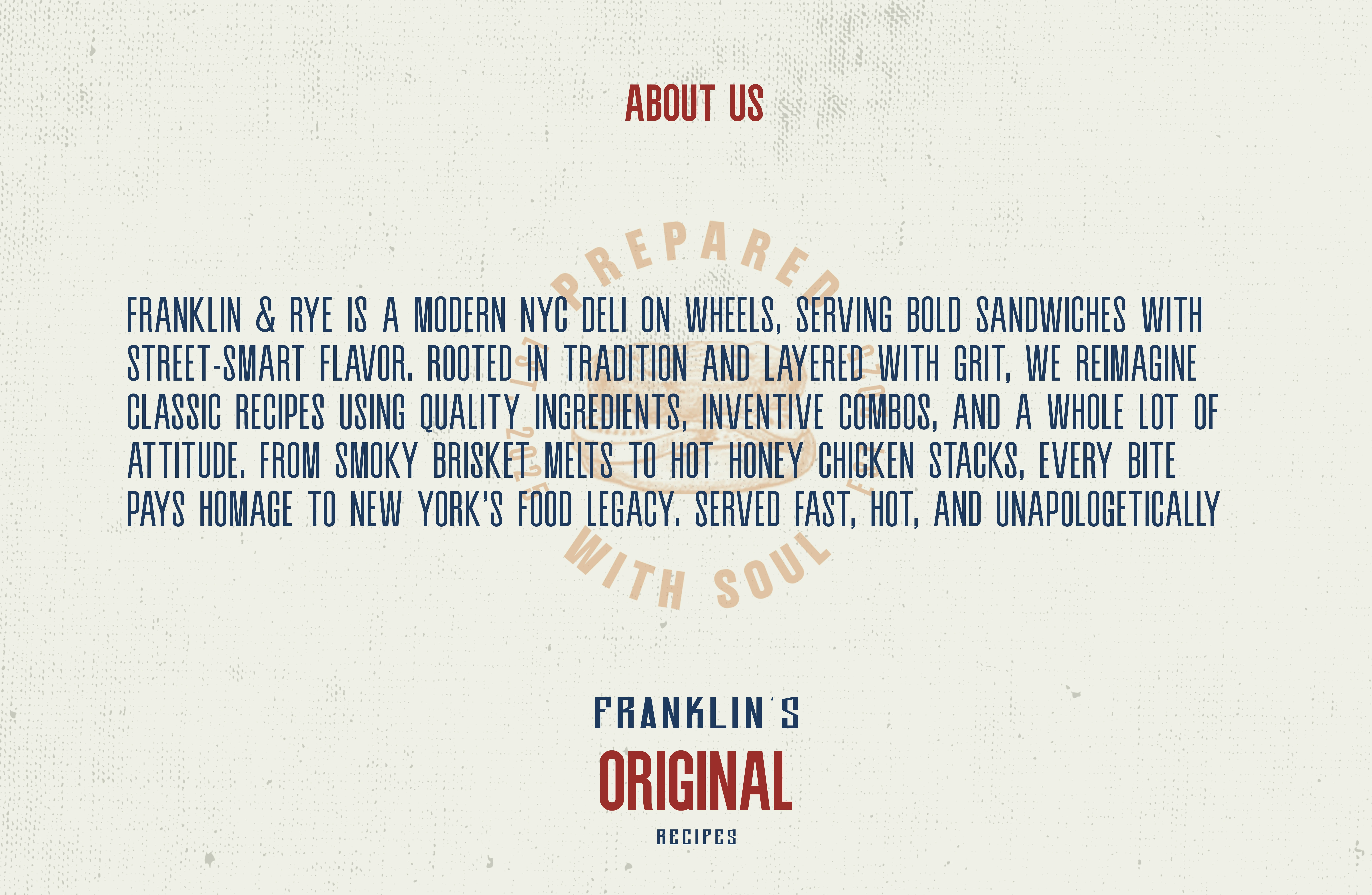 Visual identity design for Franklin & Rye, a modern food truck brand rooted in the vibrant spirit of New York City’s street food culture.