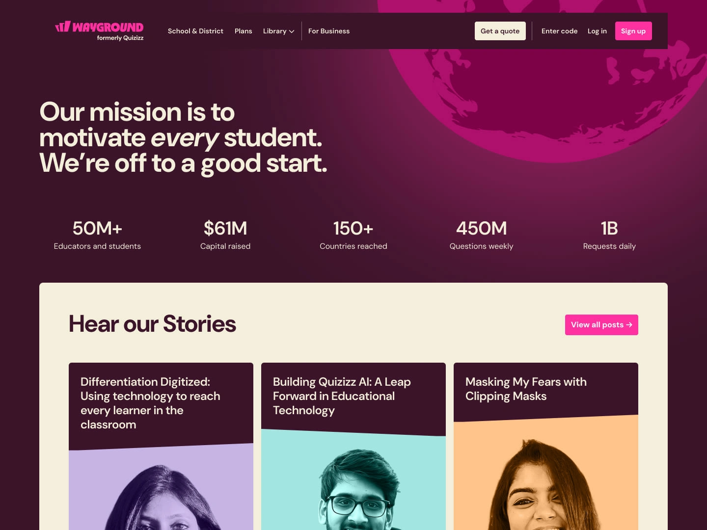 With a rebrand on the horizon, Wayground needed a website that captured their vision for the future of education, accessible, teacher-driven, and ready to scale across schools and districts. Their brand identity and design were already defined; what they needed was expert Webflow development to bring it all to life.