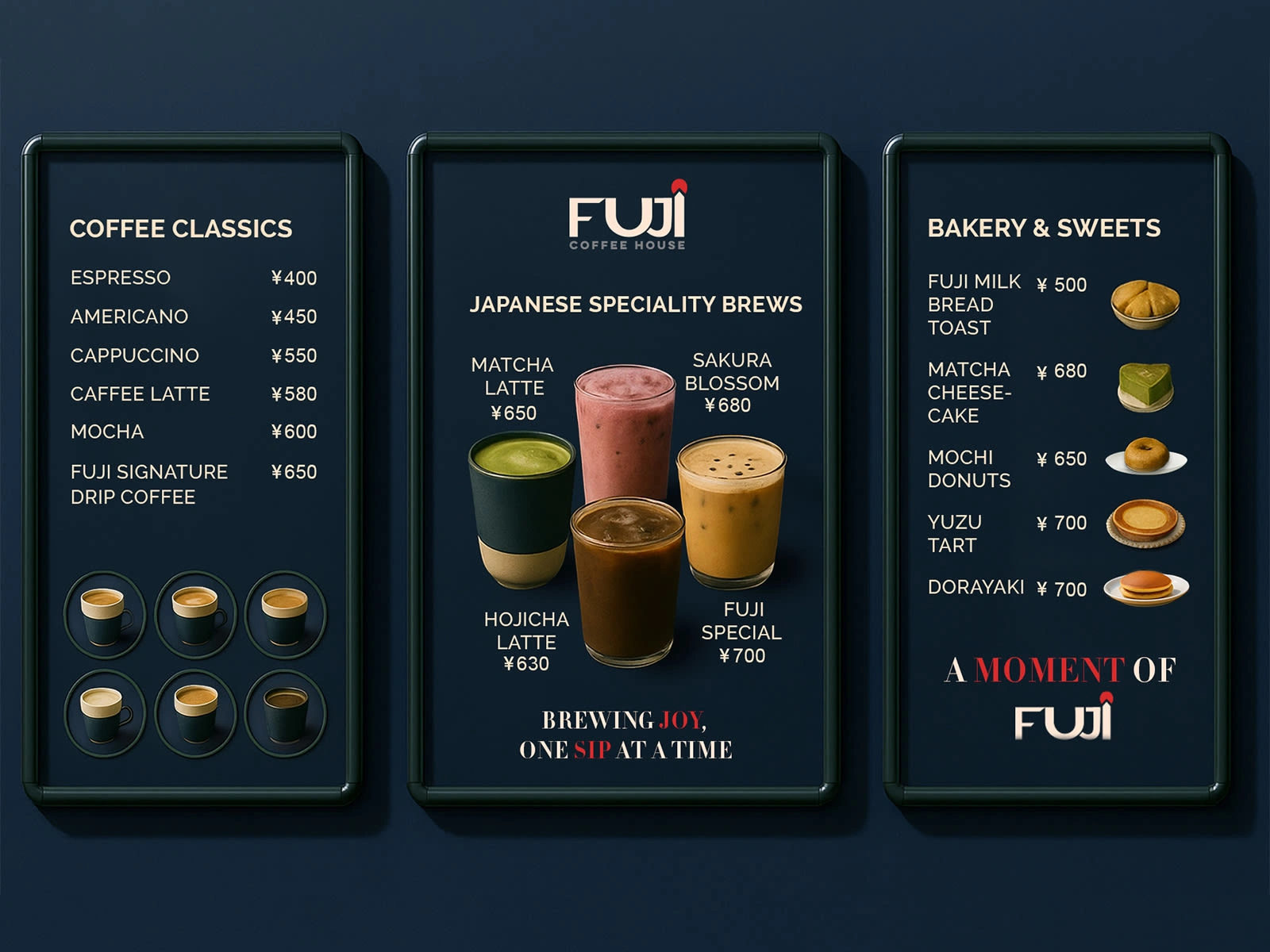 Fuji Coffee House is a thoughtfully crafted café and packaging brand that brings the calm spirit of Japan to today’s fast paced world. Inspired by serene rituals, earthy flavors and crafted connection, Fuji invites coffee lovers to pause, sip and savor from a cozy café corner to a takeaway cup and cans on the go.