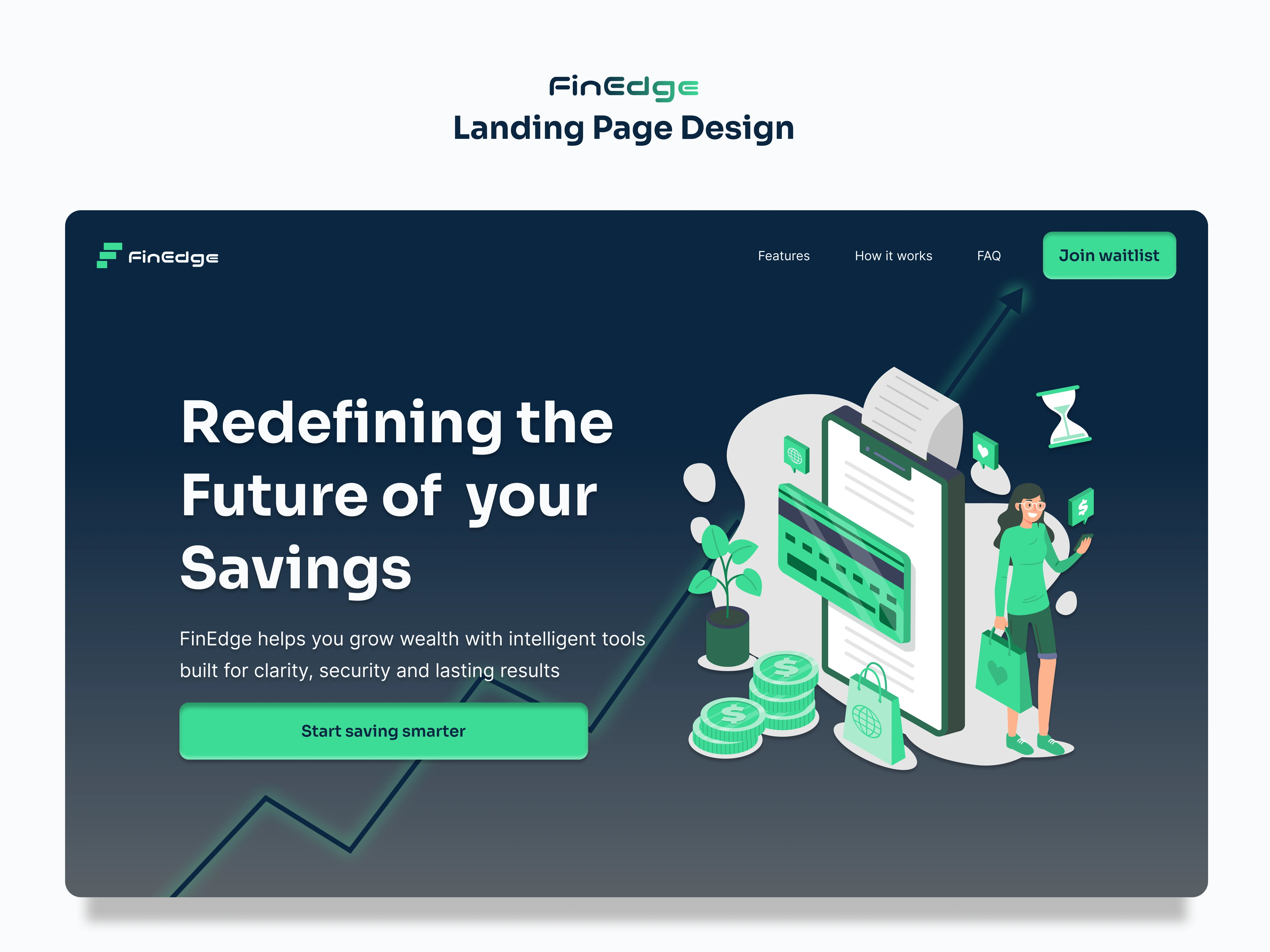 I started with competitor research and simple wireframes to map out the user flow. From there, i designed a clean landing page with a strong hero section, a "how it works" walkthrough, & clear CTAs. I used a fresh mint accent to reinforce trust & simplicity.