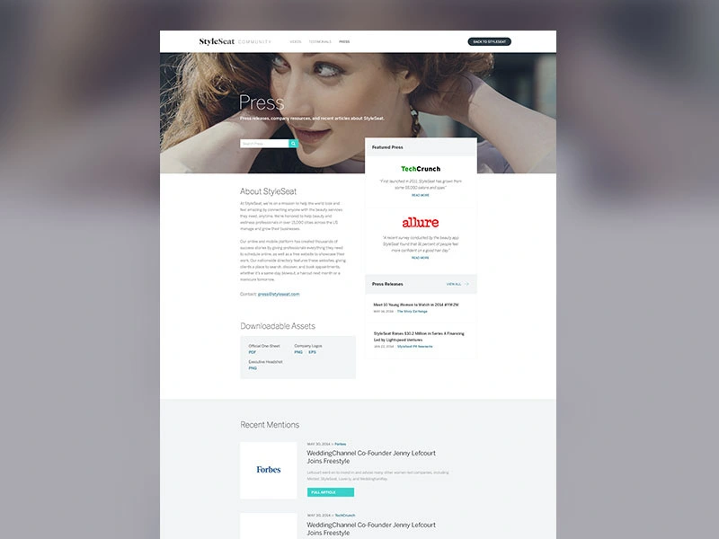 Design & Development for the Press page CMS for StyleSeat in 2015 while working there as a UX Designer.