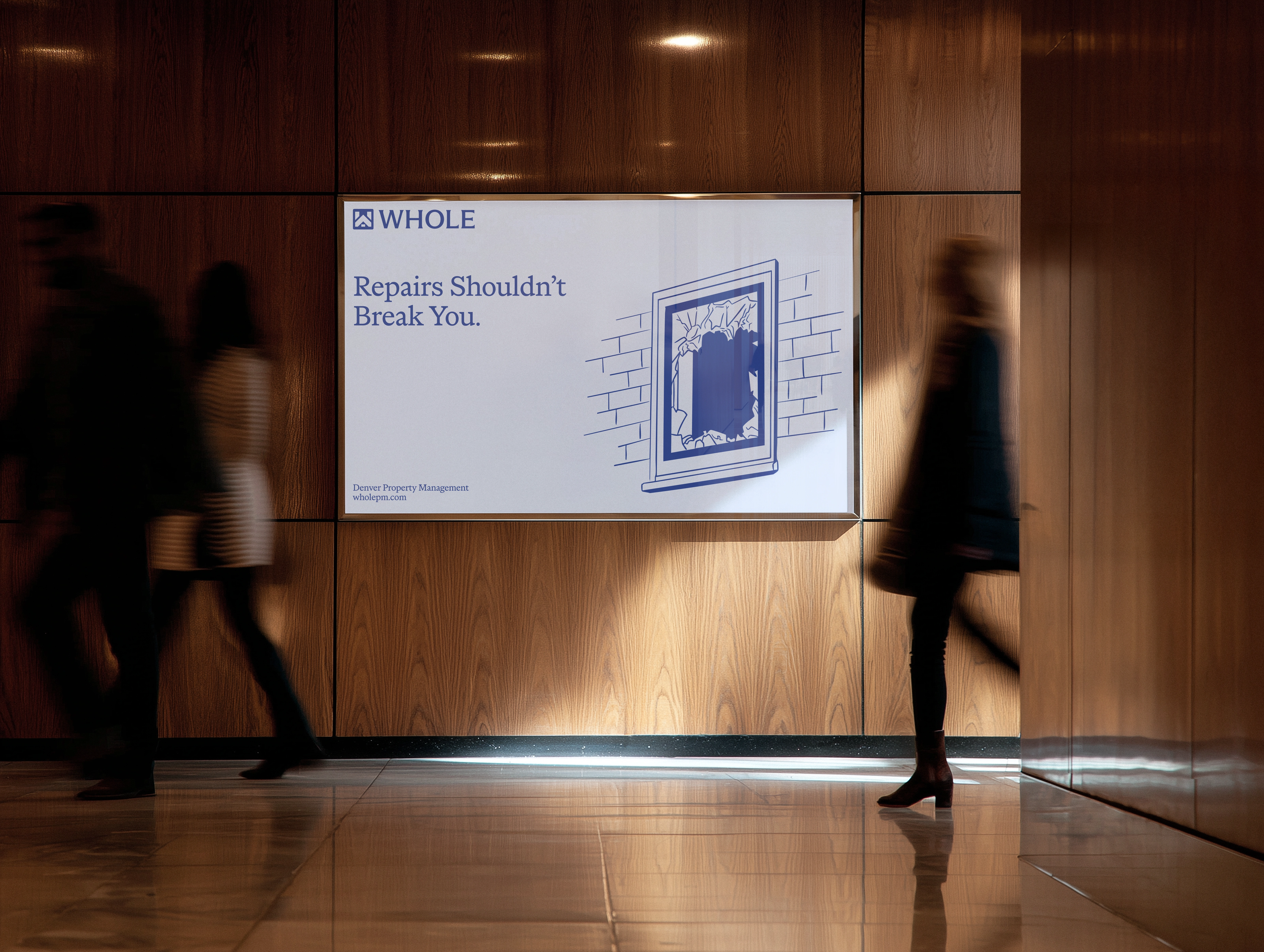 We branded Whole around the idea of effortless simplicity—using clean, human-centered illustrations to make complex property management feel approachable.