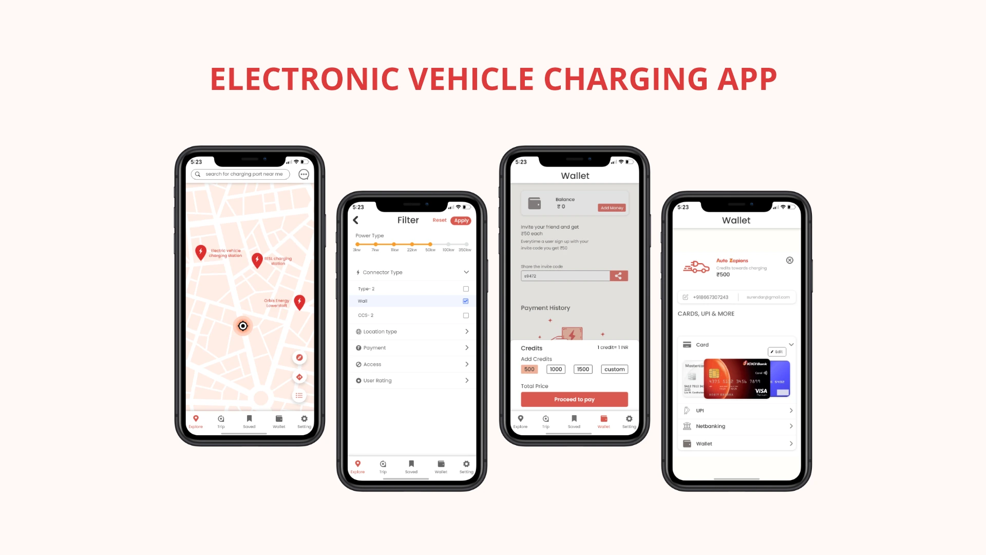 EV charging app UI design featuring station discovery, smart filters, wallet integration, and seamless payment flows for electric vehicle users.