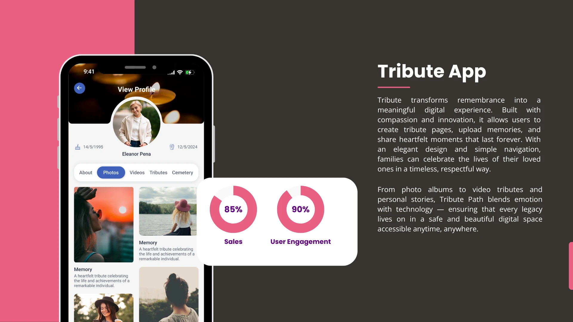 This is a digital memorial app, where families and friends can celebrate loved ones by creating personalized tribute pages, sharing memories, and videos.