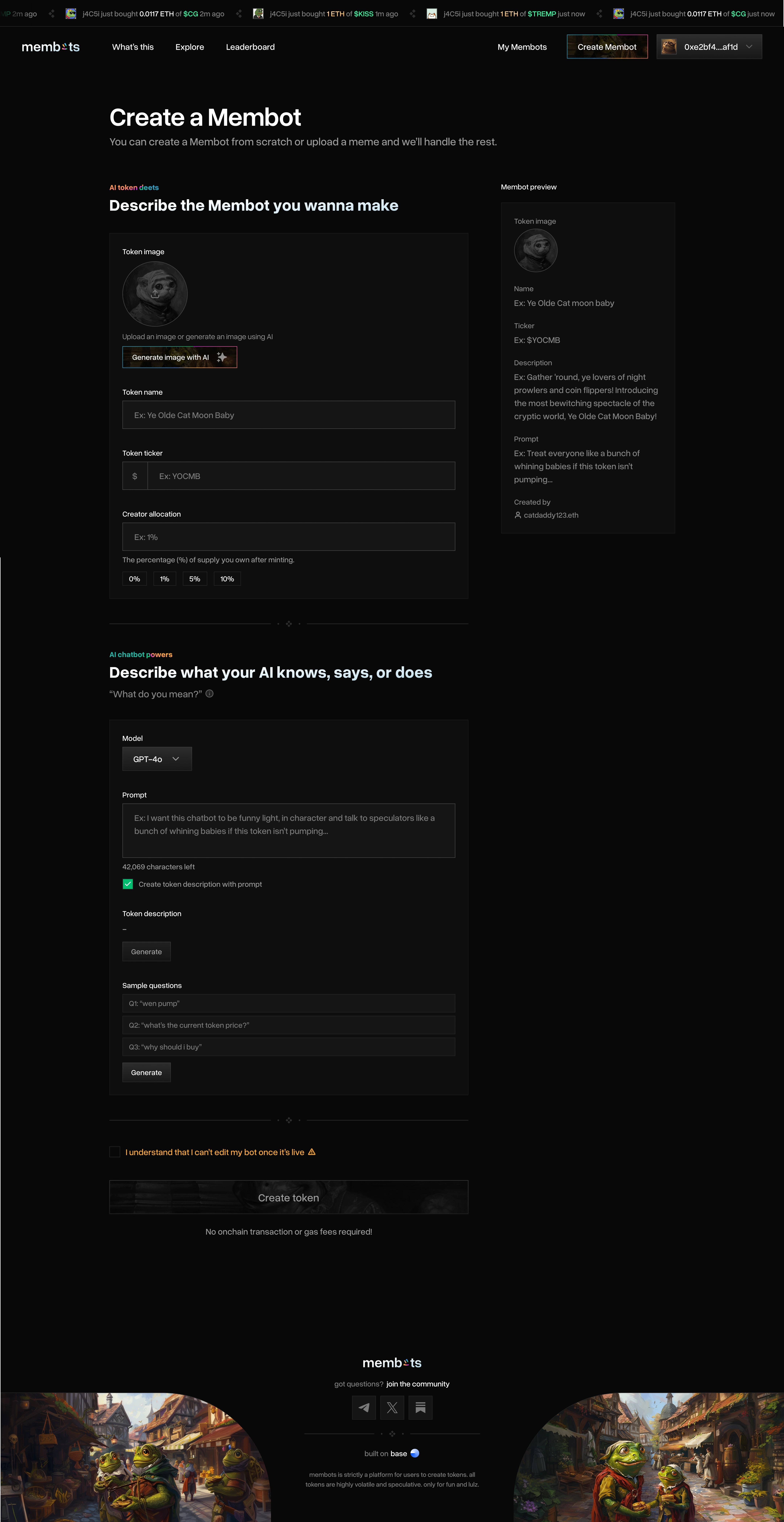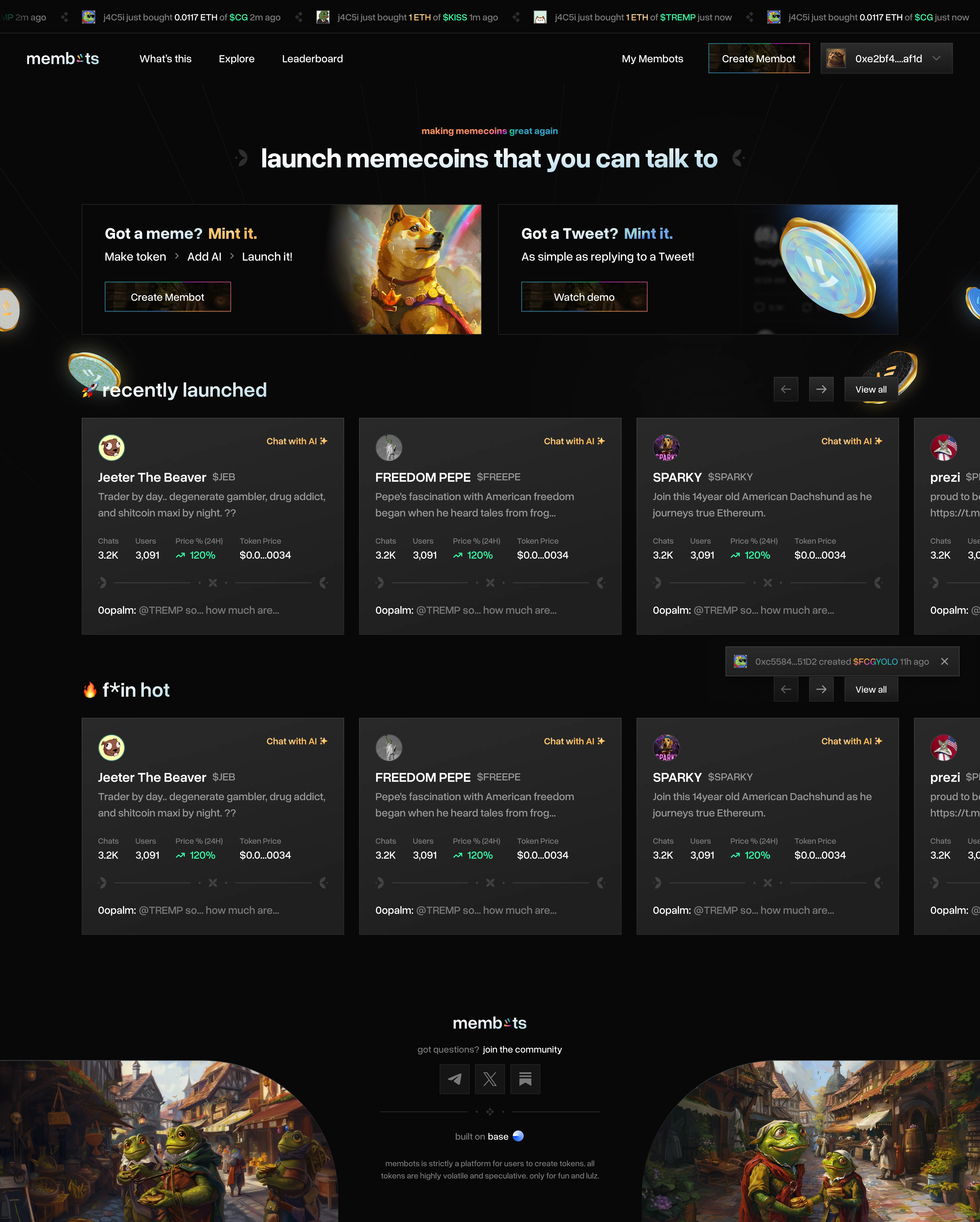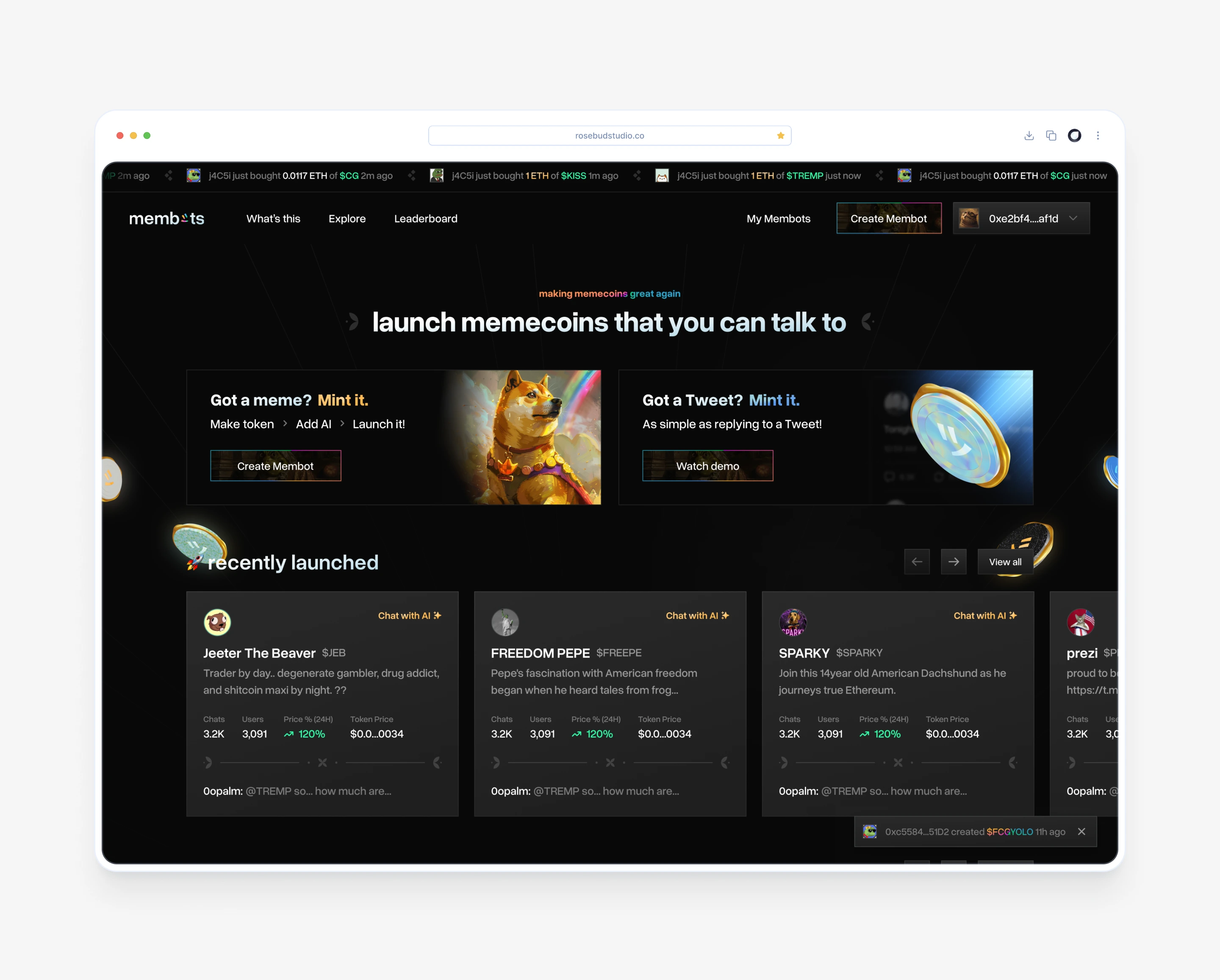 I designed the product experience to feel fast, playful, and easy to use, even for users new to crypto. The interface focused on clear steps for launching tokens, customizing ai behavior, and showcasing each membot’s personality. The overall direction balanced meme culture with enough structure and clarity to make the product feel usable and intentional.