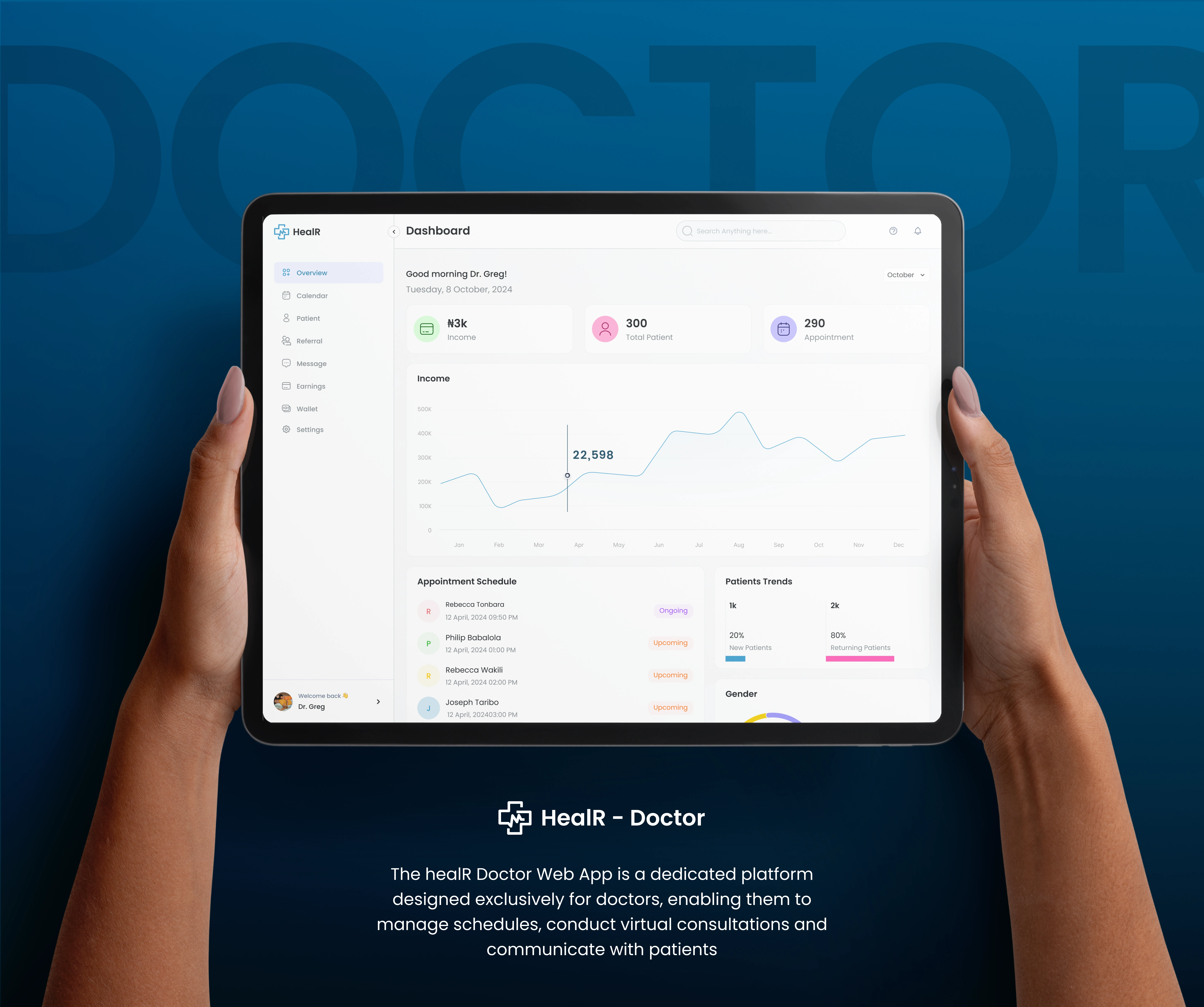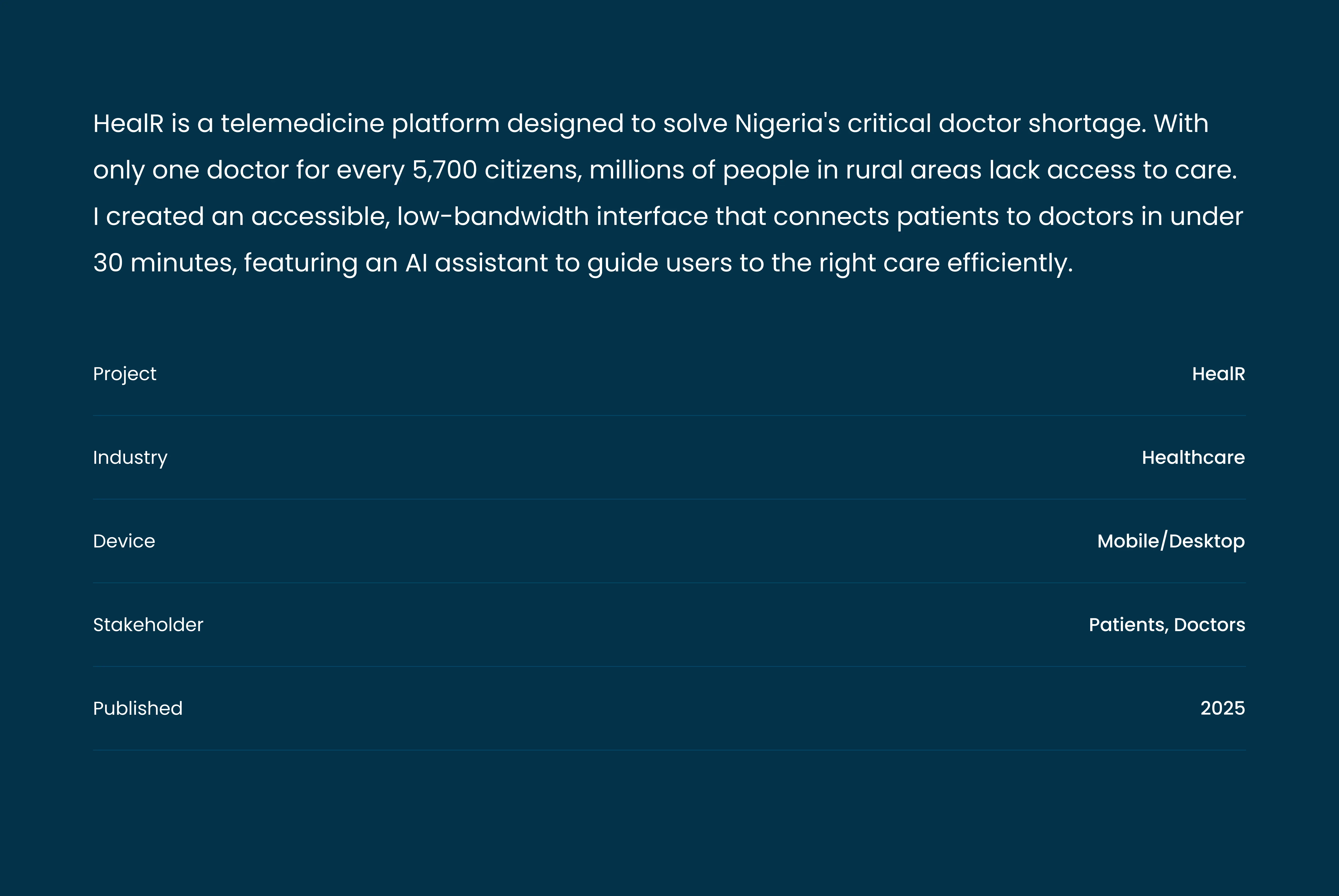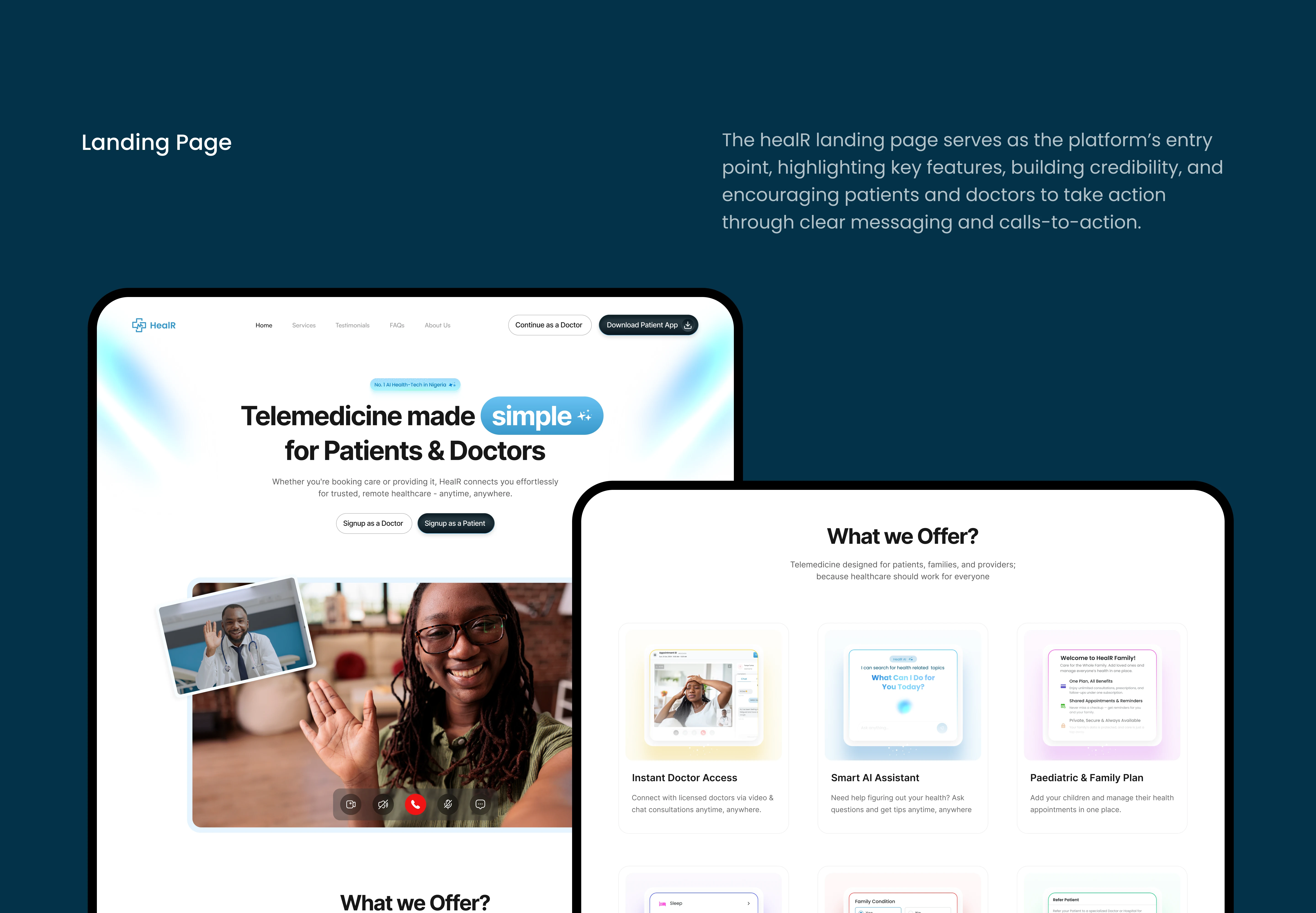 HealR is a multi-platform telemedicine solution designed to make healthcare access simple for patients.