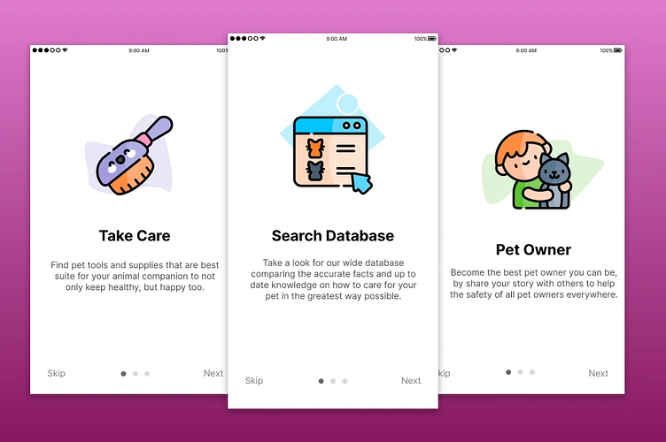 This week I worked on a simple onboarding screen setup for a pet app. A previous project I worked on back in university inspired me, and I felt like this would’ve been a fun addition. The icons I used are provided in the link below. Thanks for reading and any feedback is always appreciated!