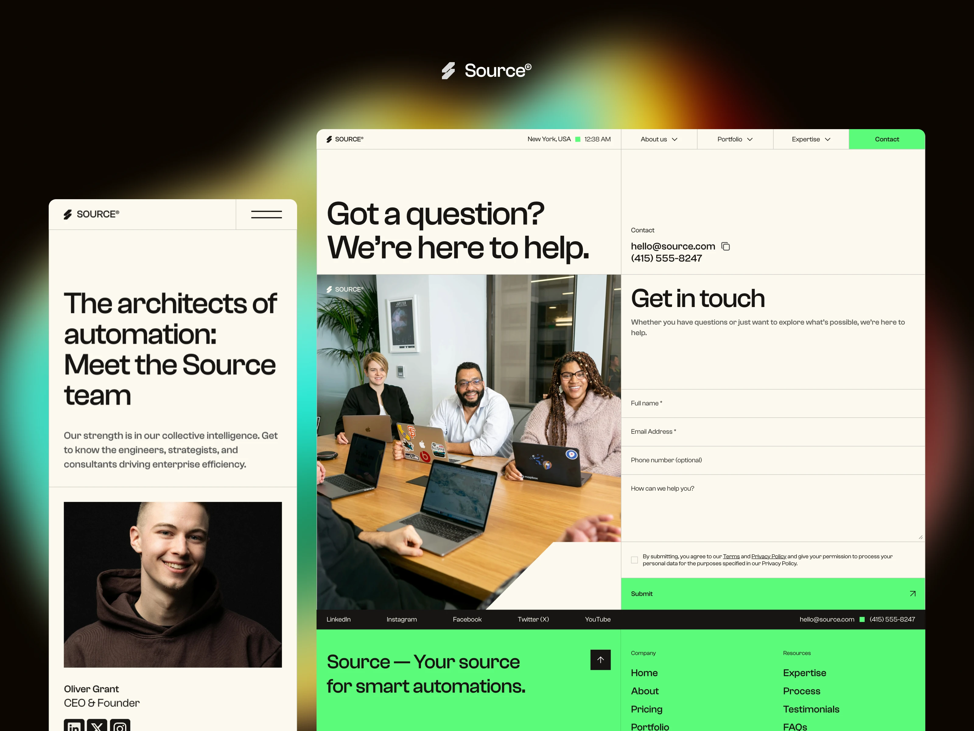 Although optimized for AI out of the box, Source® adapts seamlessly to any industry. Update the content, adjust your services, and you have a polished, enterprise-grade website ready for tech, B2B, legal, engineering, or professional service organizations.