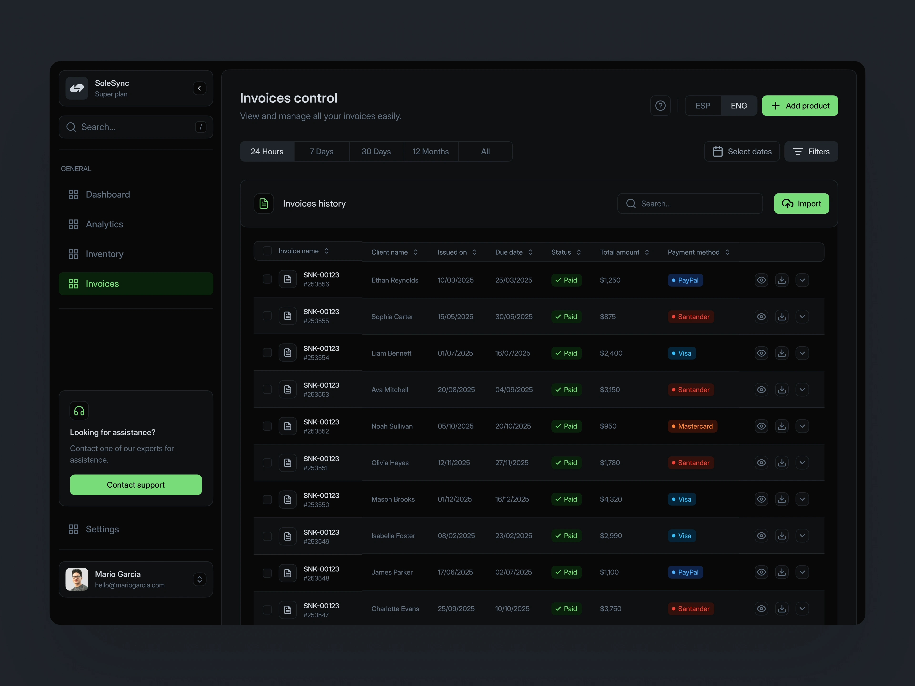 Dynamic charts visualize revenue and expenses over time, helping resellers identify patterns, track performance, and forecast sales with clarity. This data-driven design keeps insights accessible without overwhelming the user.