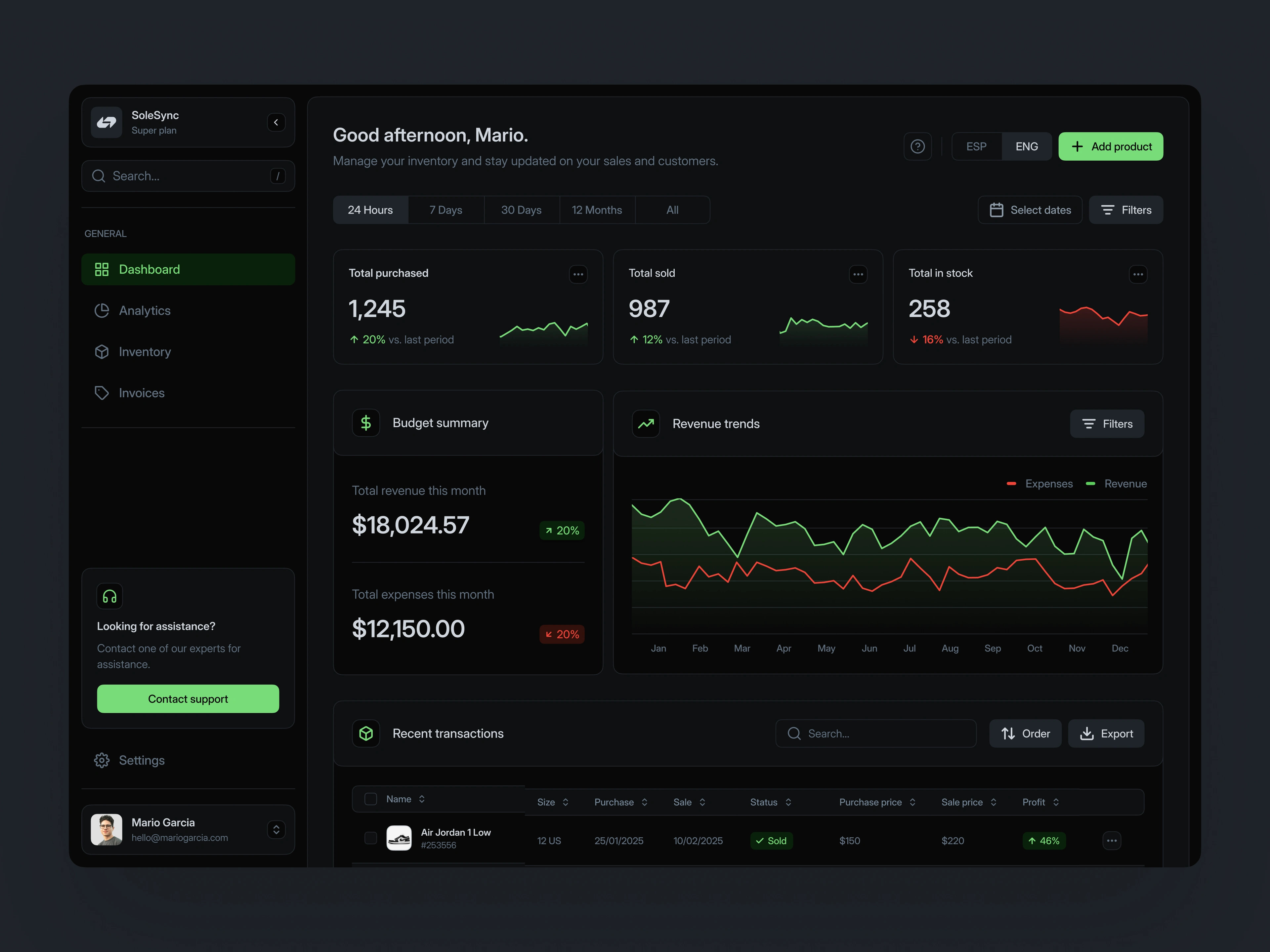Designed a dashboard for sneaker resellers to manage sales and inventory.