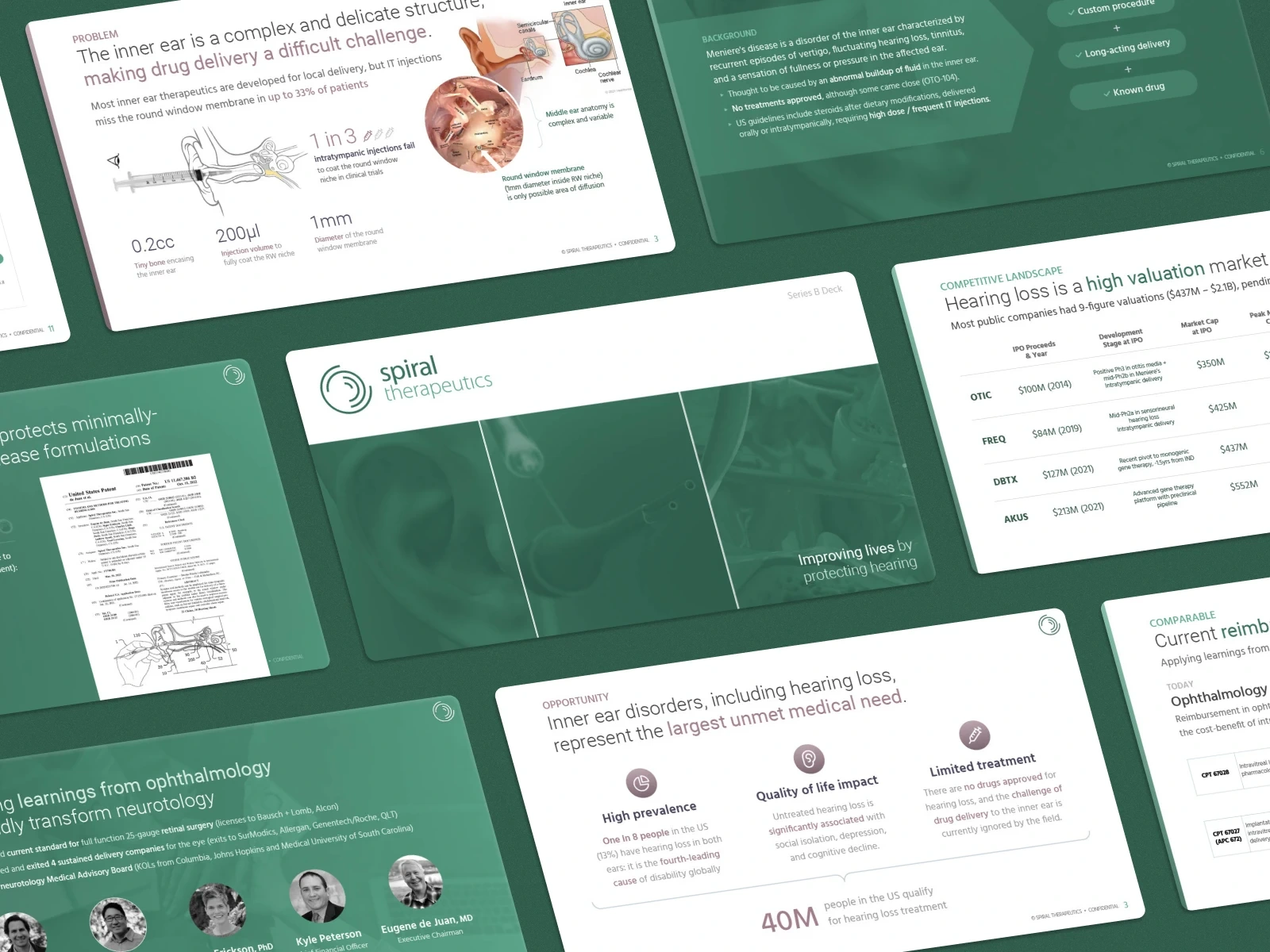 I had the chance to help create Spiral Therapeutics' pitch deck that helped raise funding for Phase II clinical trials, in a round led by Esperante Ventures and Ferring Ventures.