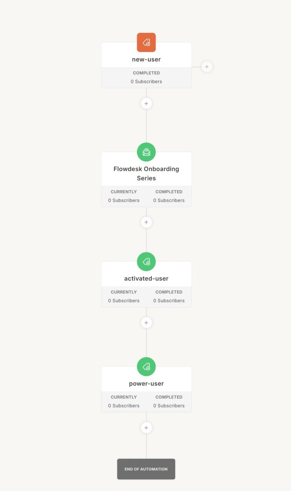 Automation workflow connecting signup, onboarding, and user activation stages.