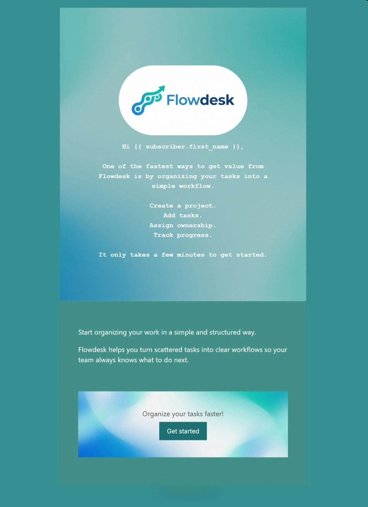 Instead of listing features, the email shows a simple workflow: