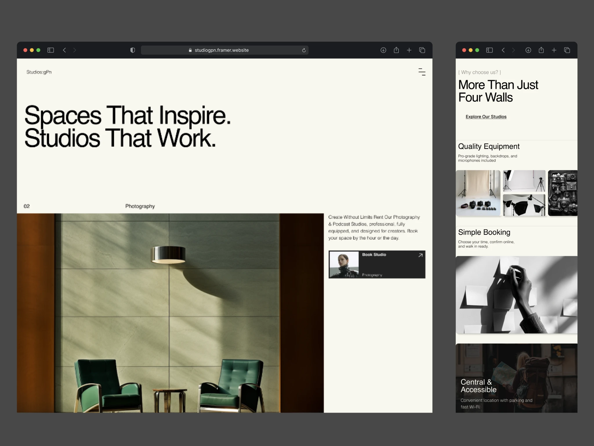 “A boutique photography and podcast studio designed for creators who value quality and ease. Rent our fully equipped spaces by the hour or day no distractions, just room to create.”