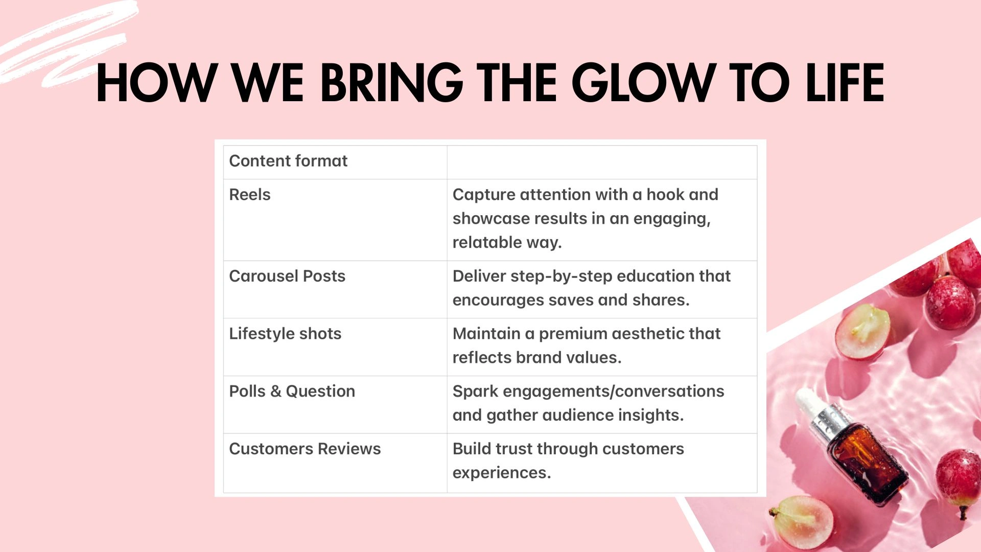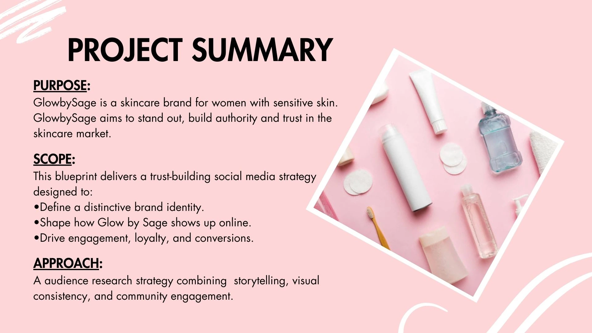 The strategy was designed as a blueprint to guide GlowbySage’s social media presence, content creation, and community growth.
