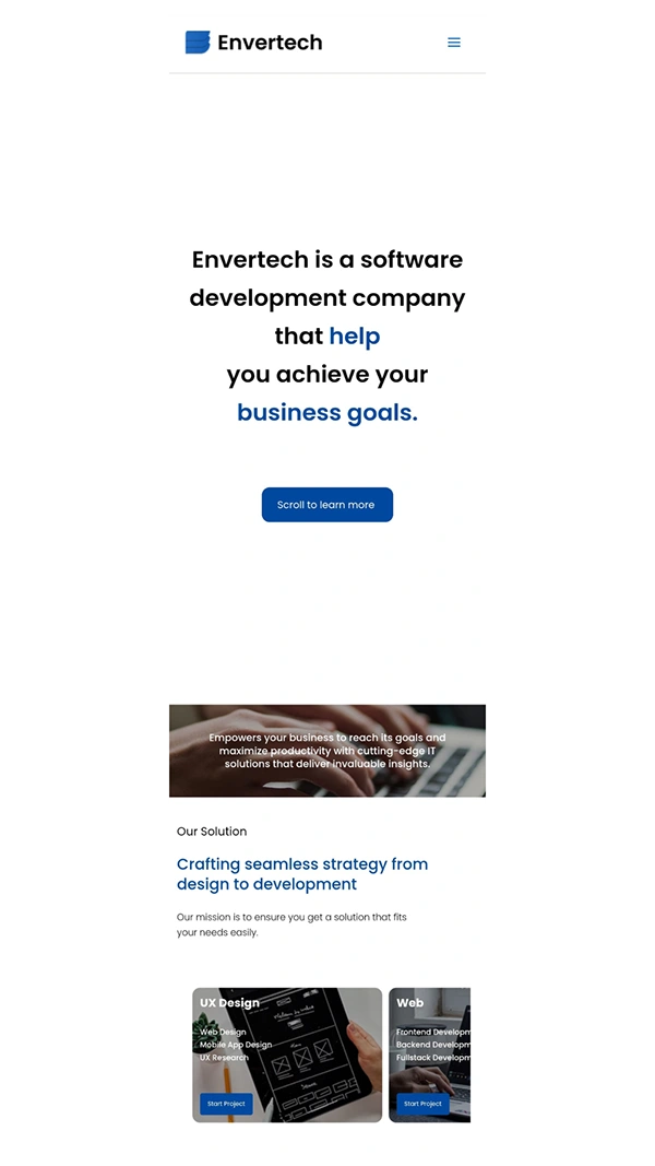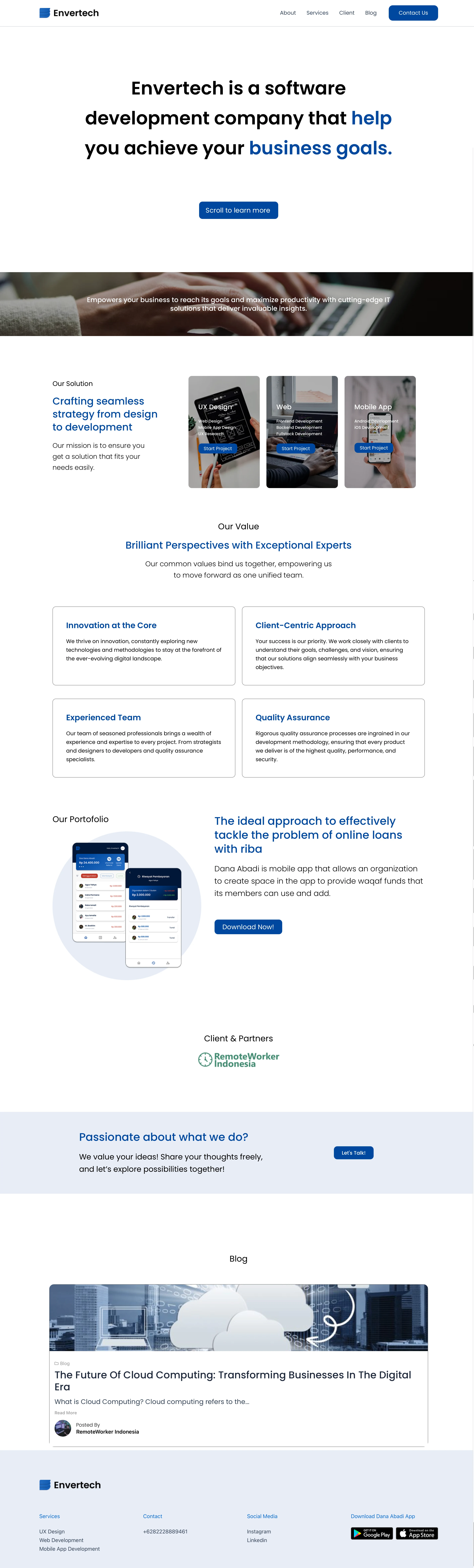 Envertech is a software development company that provides innovative tech solutions for businesses. They wanted a clean, modern, and professional web presence to showcase their services, portfolio, and values.